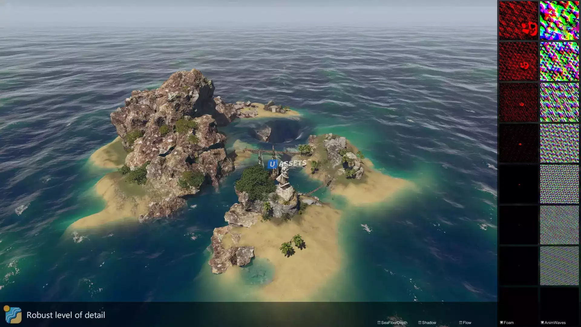 Волнистая вода с инновационным дизайном волн в стиле "эквалайзер". Поддерживаются как подходы FFT, так и подходы "Герстнера".