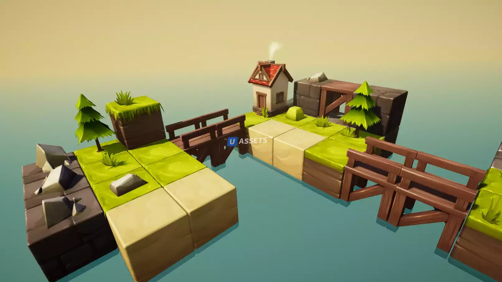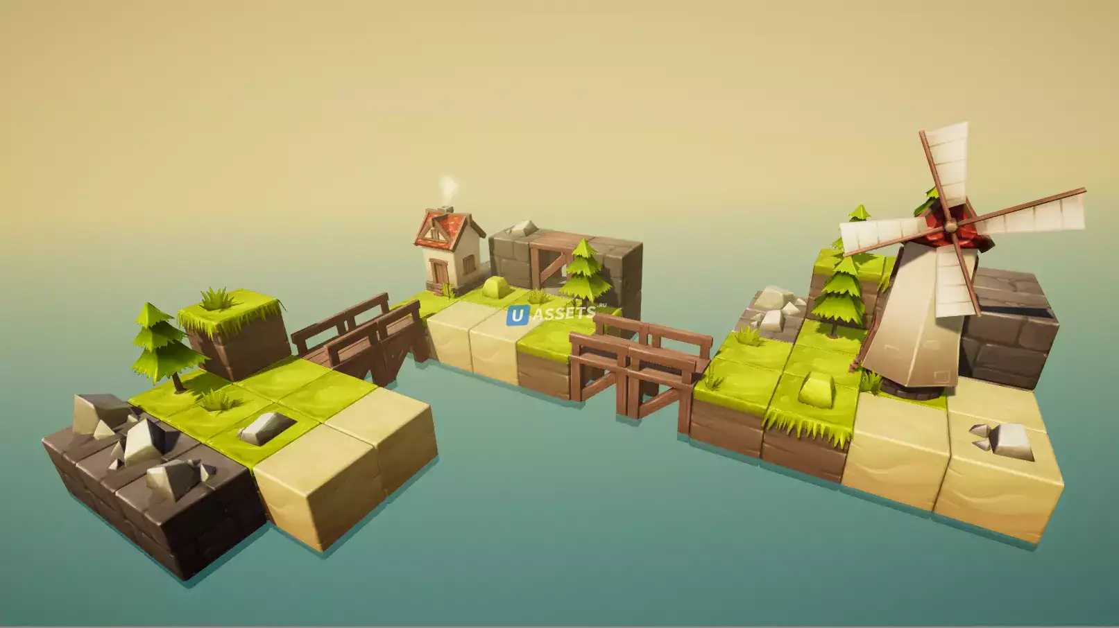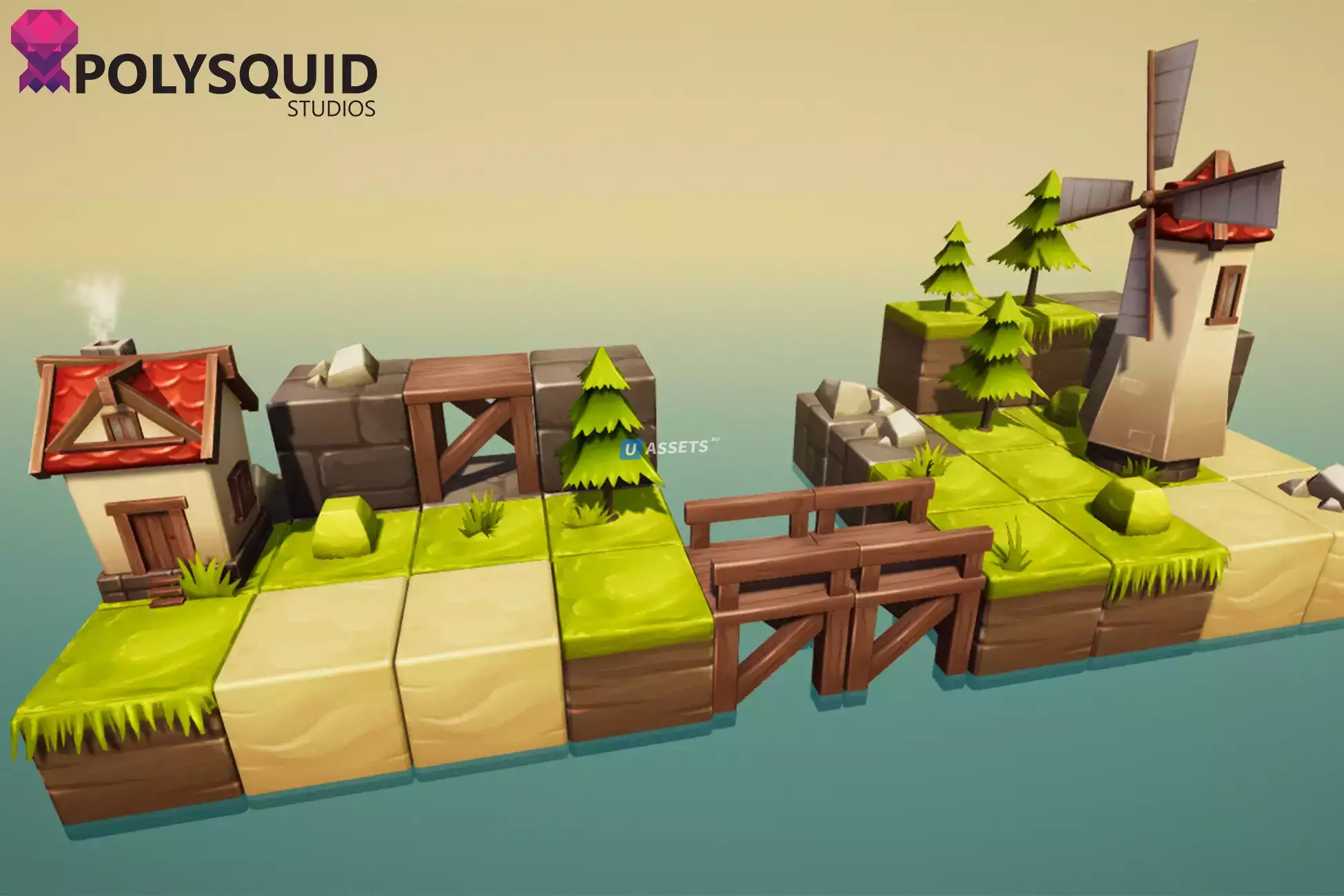 Красивые текстуры ручной росписи, упакованные в низкополигональные модели, которые поставляются с демонстрационной сценой. Действительно проста в использовании и создает классные маленькие среды для головоломок или аркадных игр.