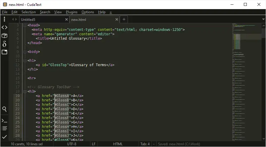 CudaText — это кроссплатформенный текстовый редактор с открытым исходным кодом, разработанный для разработчиков и пользователей, которым требуется мощный и гибкий инструмент для редактирования кода и текстов. Он поддерживает множество языков программирования и предоставляет богатый набор функций, обеспечивая высокую производительность и удобство использования.