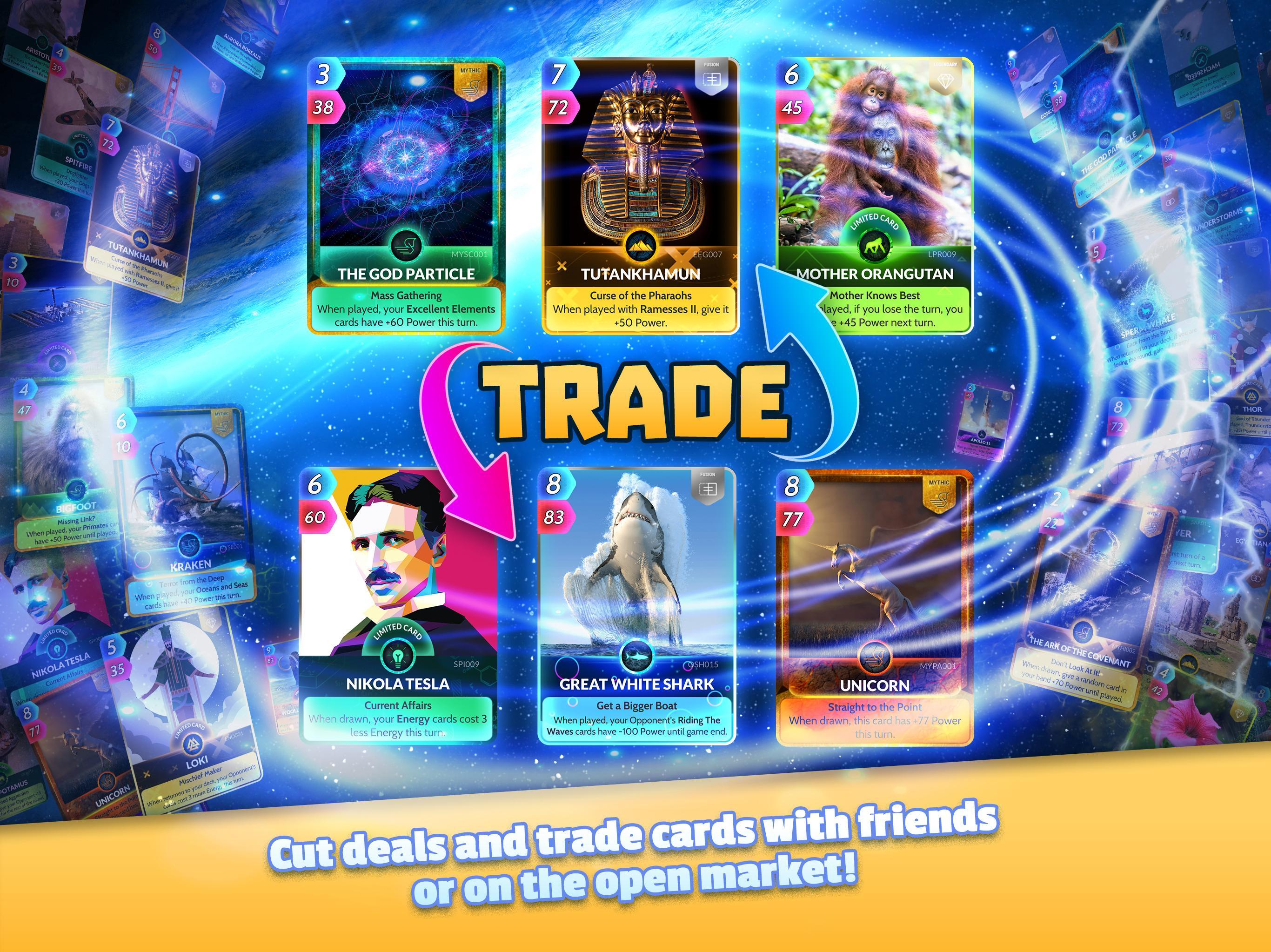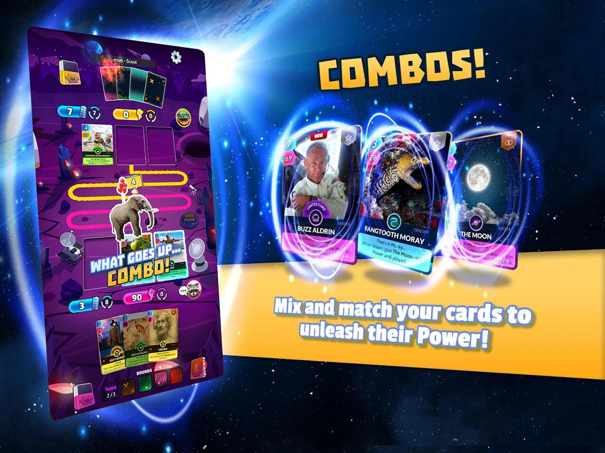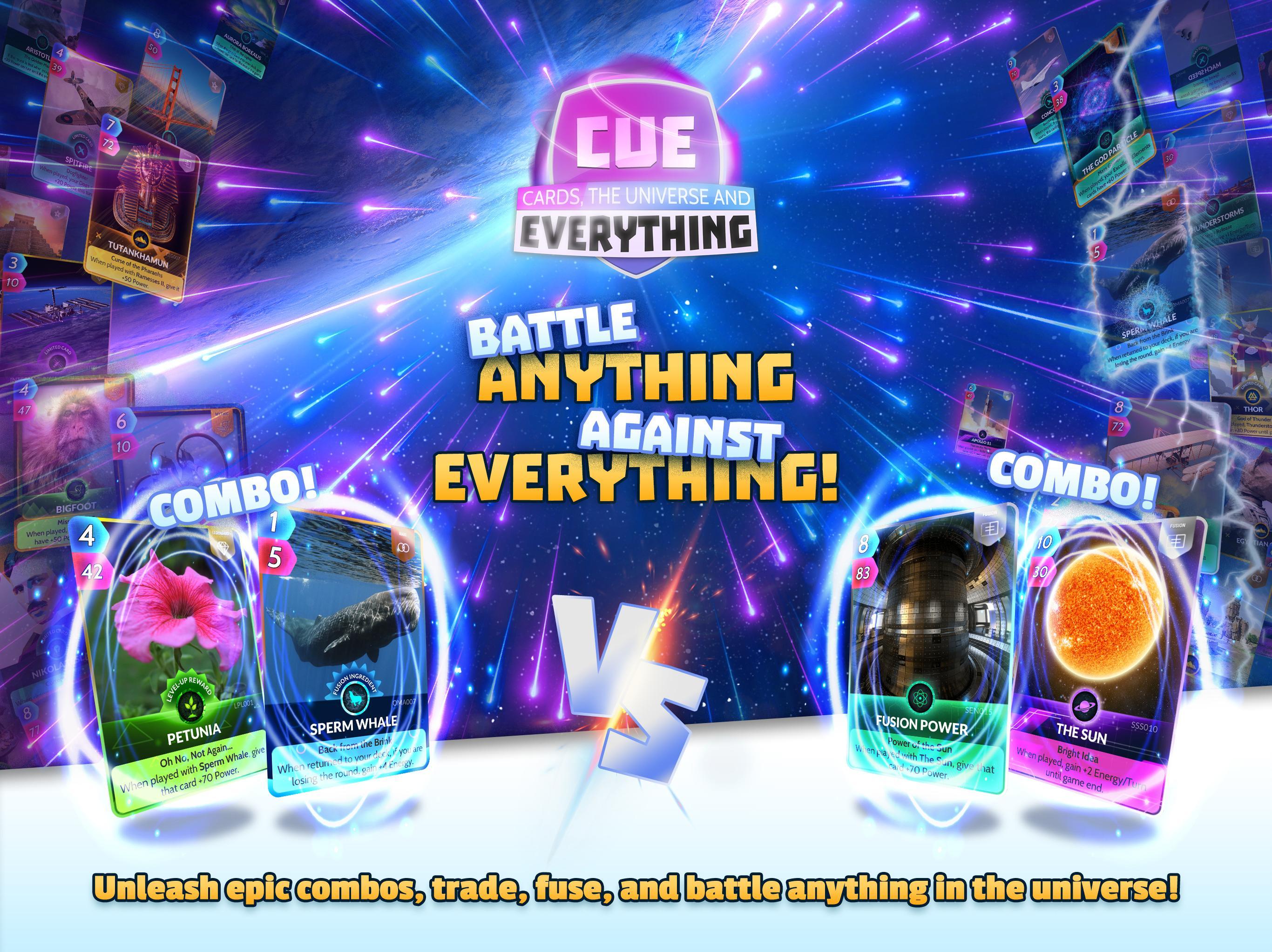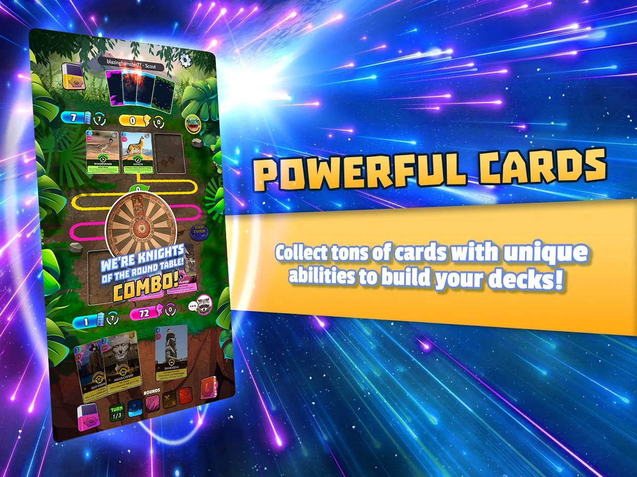 CUE CARDS 2.11.41 — это динамичная коллекционная карточная игра, где игроки собирают уникальные колоды и сражаются с противниками со всего мира. Основой геймплея являются стратегические пошаговые дуэли, в которых победа зависит от продуманного комбинирования карт. Действие разворачивается на разнообразных тематических аренах, посвященных космосу, истории, науке, палеонтологии и искусству, что делает каждое сражение не только увлекательным, но и познавательным.