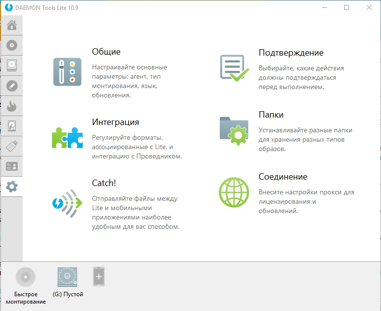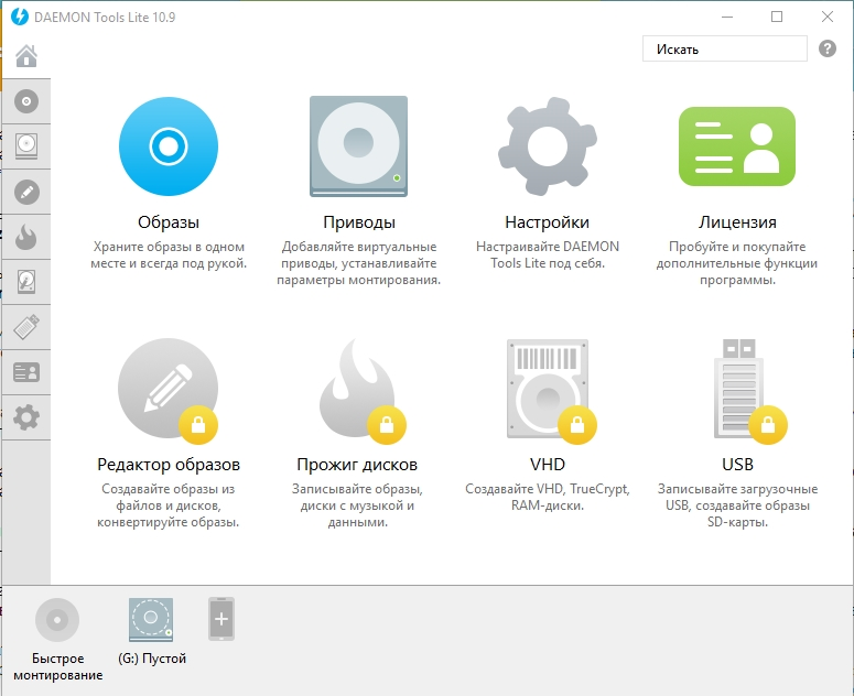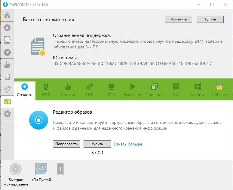- Монтирование образов в виртуальные приводы (DT, SCSI, IDE и HDD).