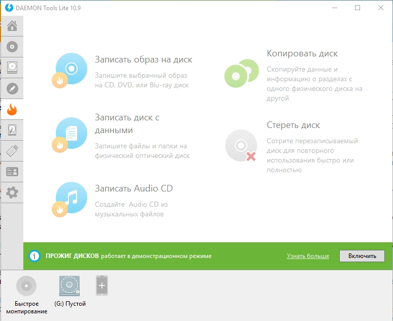 - Запись образов на физические диски — CD/DVD/Blu-ray.