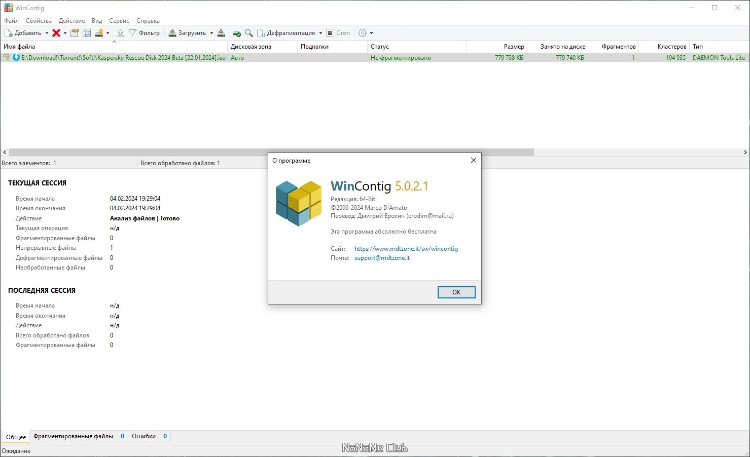 Дефрагментатор WinContig 5.0.2.1 Portable — это удобная и автономная утилита для оптимизации файлов. Её ключевое преимущество — возможность быстрой дефрагментации отдельных файлов без необходимости обрабатывать весь диск целиком. Программа не требует установки, не оставляет записей в реестре Windows и не создает дополнительных папок в системе.