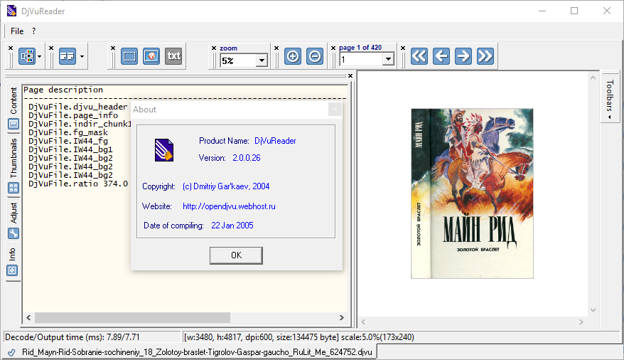 DjvuReader 2.0.0.26 — бесплатное приложение для просмотра djvu-документов, работающее на операционных системах «