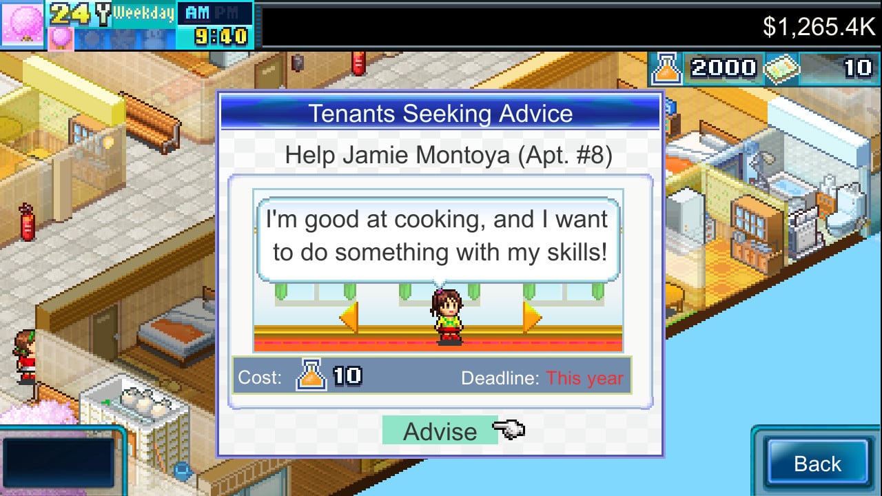 Dream House Days DX предлагает игрокам попробовать себя в роли управляющего многоквартирным домом. В этой игре вам предстоит развивать собственный бизнес, модернизировать жилые помещения и расширять спектр услуг для арендаторов. Dream House Days DX представляет собой классический симулятор, где нужно контролировать множество аспектов: социальные взаимодействия, экономику и управленческие решения. Игрокам необходимо проявить себя как грамотные менеджеры, эффективно распределяя ресурсы и разрабатывая стратегии для привлечения новых жильцов.