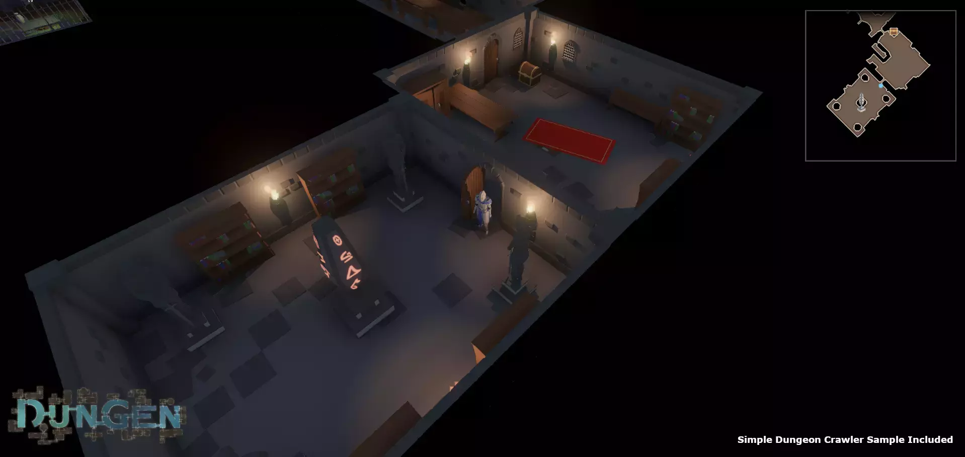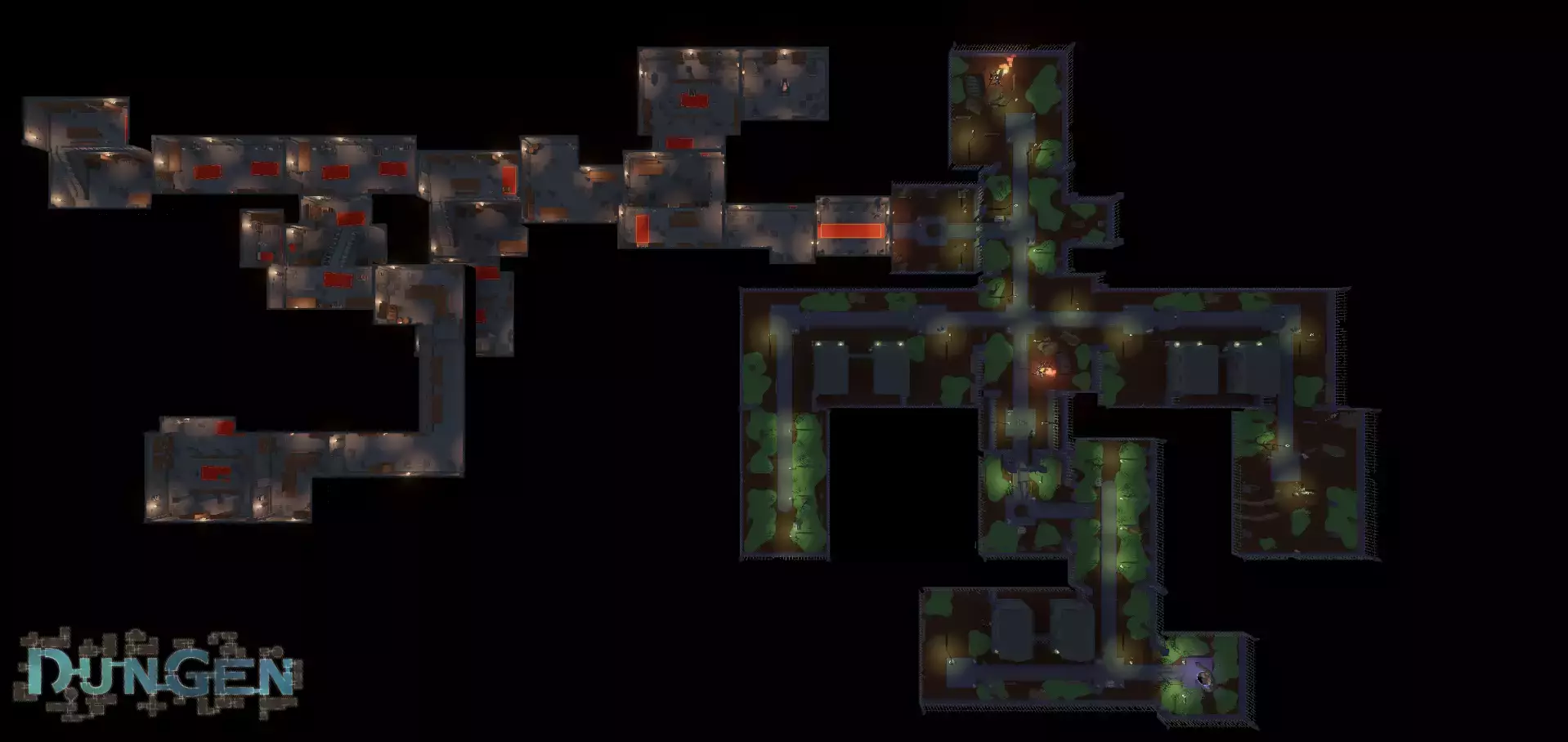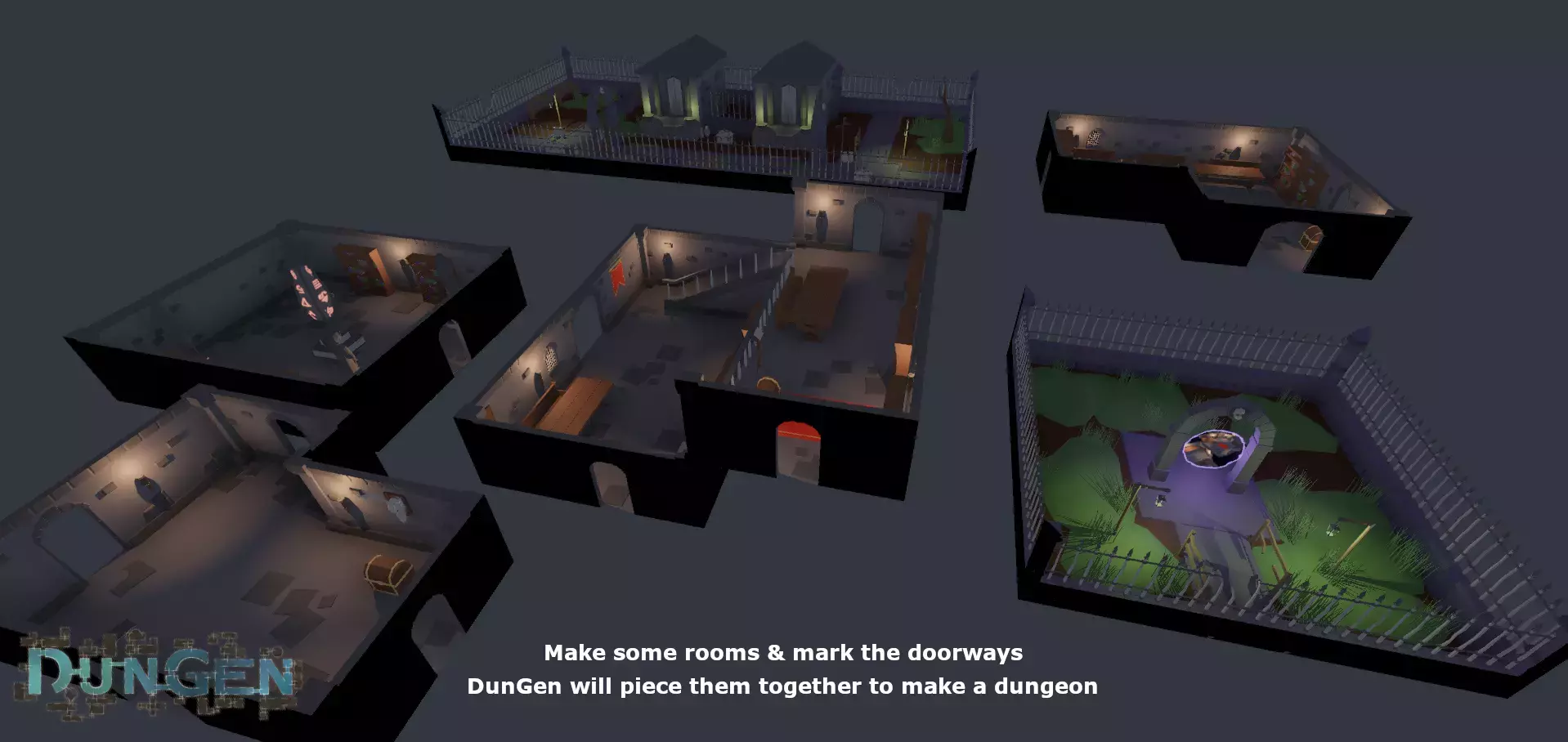 DunGen позволяет вам процедурно создавать макет подземелья, собирая комнаты, созданные вручную, с использованием настраиваемого набора правил.