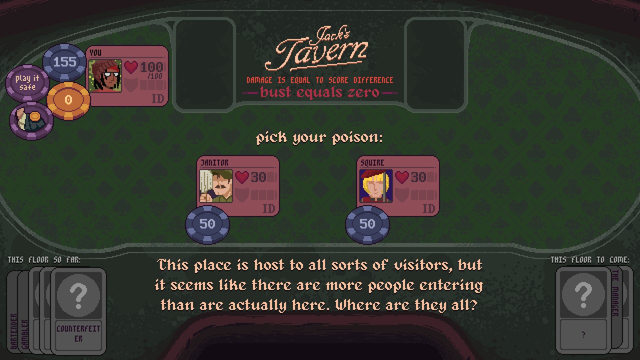 Dungeons & Degenerate Gamblers бросает кривой шар в традиционные карточные игры. Забудьте о червах, пиках и трефах. Здесь королем является блэкджек, но с изюминкой - roguelike-изюминкой, то есть. Представьте себя в тускло освещенной таверне, из вашей трубки валит дым, пока вы оцениваете своего противника за потертым столом. Но вместо мечей и колдовства ваше оружие - карты. Уникальные карты, которые могут улучшить вашу руку, испортить колоду противника или даже повлиять на ход истории. Пристегните ремни, потому что в Dungeons & Degenerate Gamblers единственная гарантия - это столкновение удачи и стратегии в эпической битве за фишки.
