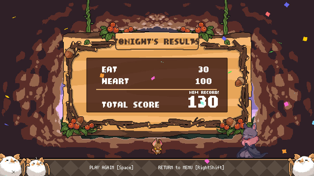 После каждого вылета протагонист возвращается в общую пещеру, служащую центральной локацией. Это убежище населяют разные неигровые персонажи, среди них — мать-крылан и трое белых мышат-близнецов. По мере прохождения игры открываются новые виды рукокрылых, например, двухцветный кожан или ушан. Они тоже поселяются в общем доме, давая повод для общения. В ходе вылазок геймер может находить и коллекционировать сокровища — предметы из внешнего мира, вызывающие у зверьков неподдельный интерес.