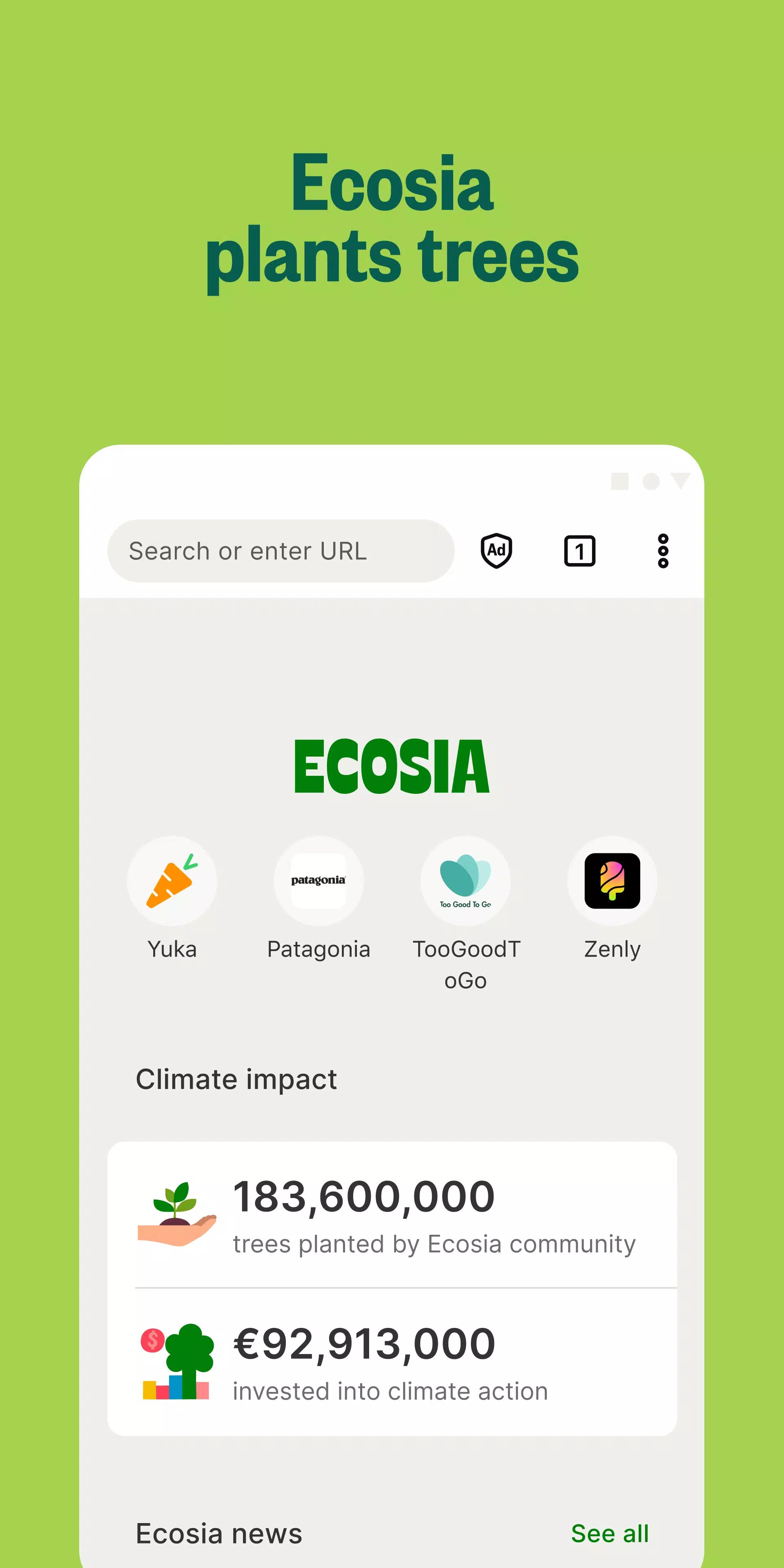 Выбирая ECOSIA 12.1.3 в качестве основного браузера, вы получаете привычный и быстрый опыт веб-навигации, который при этом имеет глубокий смысл. Это простой и автоматический способ делать доброе дело каждый день, не прилагая дополнительных усилий. Приложение объединяет глобальное сообщество миллионов пользователей, чьи повседневные действия в интернете складываются в масштабные экологические изменения.