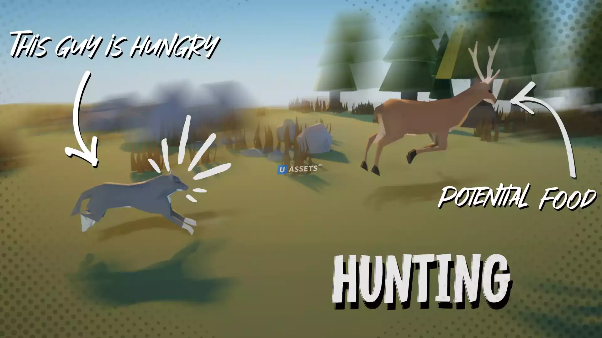 Сражайся или беги: Когда хищник голоден, он будет охотиться за пищей, а добыча будет убегать от опасности, выбирая маршруты, чтобы сбить хищников с толку.