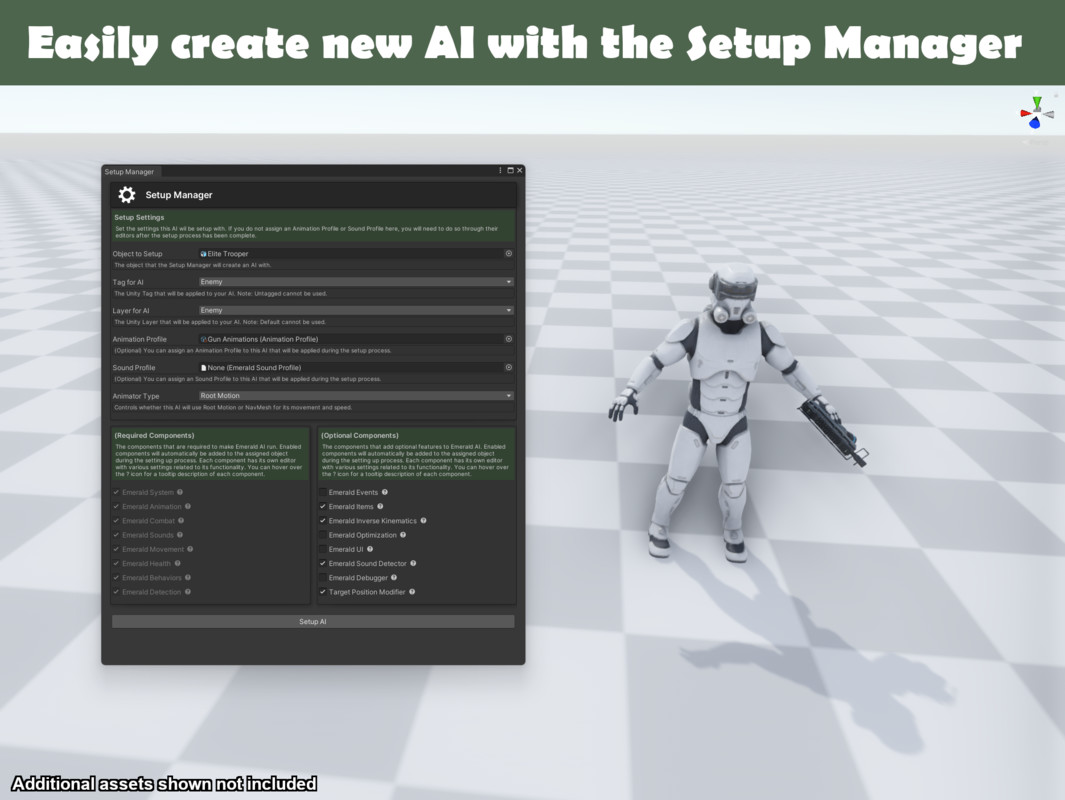 Emerald AI 2025 — это современный универсальный фреймворк искусственного интеллекта для Unity, полностью переработанный и оптимизированный для создания NPC любого типа. Система подходит для разработки игр разных жанров: от шутеров и RPG до симуляторов и open-world проектов.