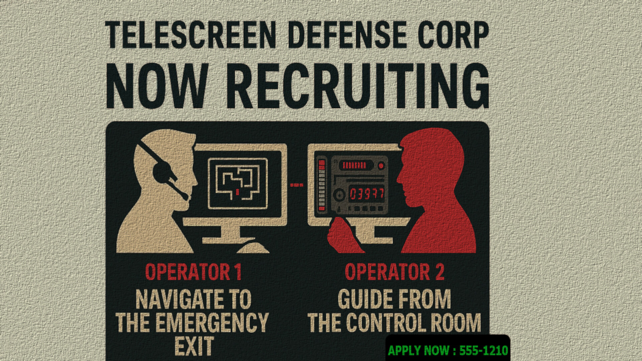 Emergency Exit — это кооперативная онлайн-головоломка для двух человек, где игроки физически разделены и могут полагаться только на голосовое общение. Один участник, вооруженный фонариком с ограниченным зарядом, исследует темные локации, сталкиваясь с распространяющимся огнем и коварными ловушками. Его задача — не заблудиться в темноте и действовать предельно осторожно. Второй игрок находится в диспетчерской, лишенный визуального и звукового контакта с напарником, и должен направлять его, используя карту.