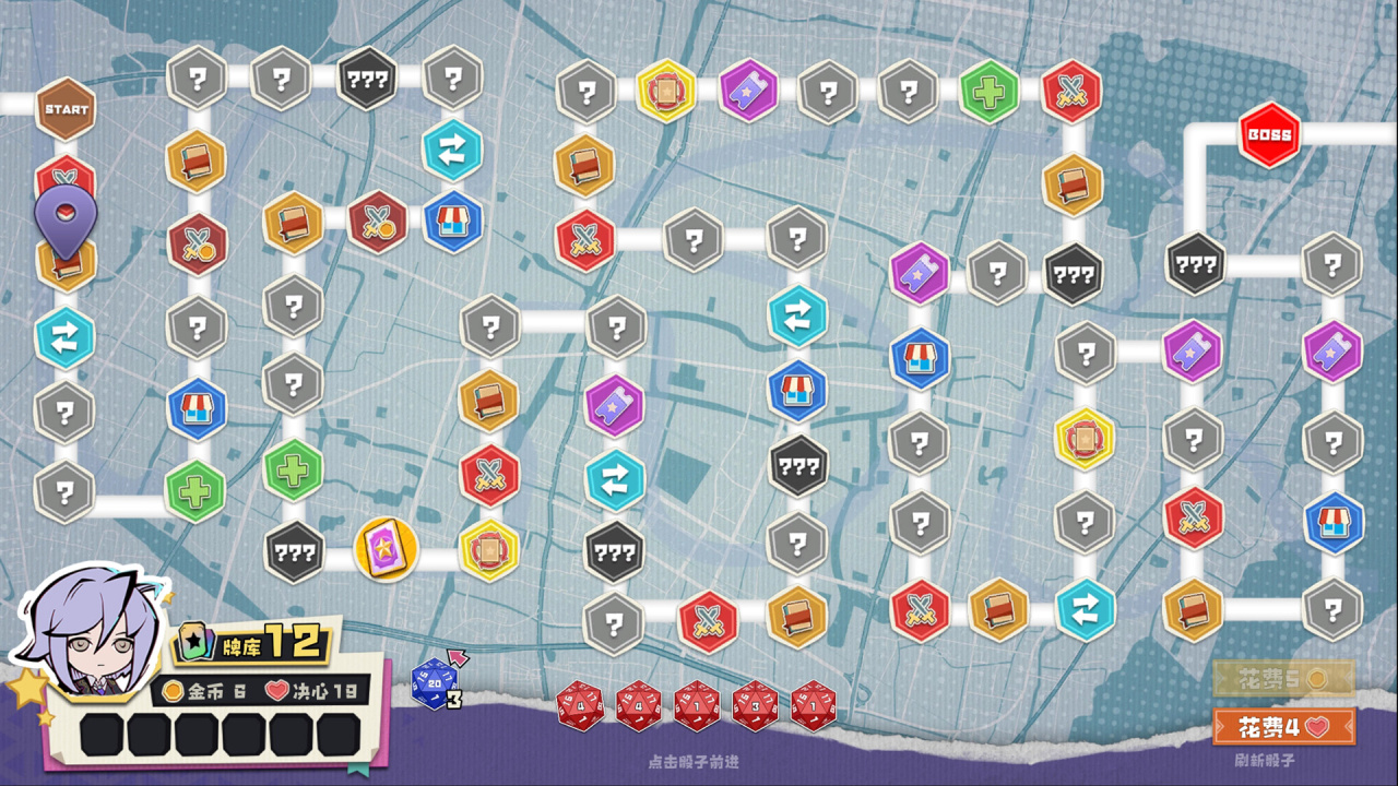 Кости разных типов вносят элемент постоянной непредсказуемости в битвы, обеспечивая разнообразие между игровыми сессиями. Даже использование одной и той же колоды против знакомых противников может каждый раз приводить к совершенно разным результатам. Эта механика подчеркивает важность адаптивности и взаимодействия игрока с собранной колодой в этой карточной игре. Роуглайт-структура поощряет исследование города, где каждый шаг вперёд несёт неопределённость, потенциально открывая новые тайны или создавая неожиданные опасности.