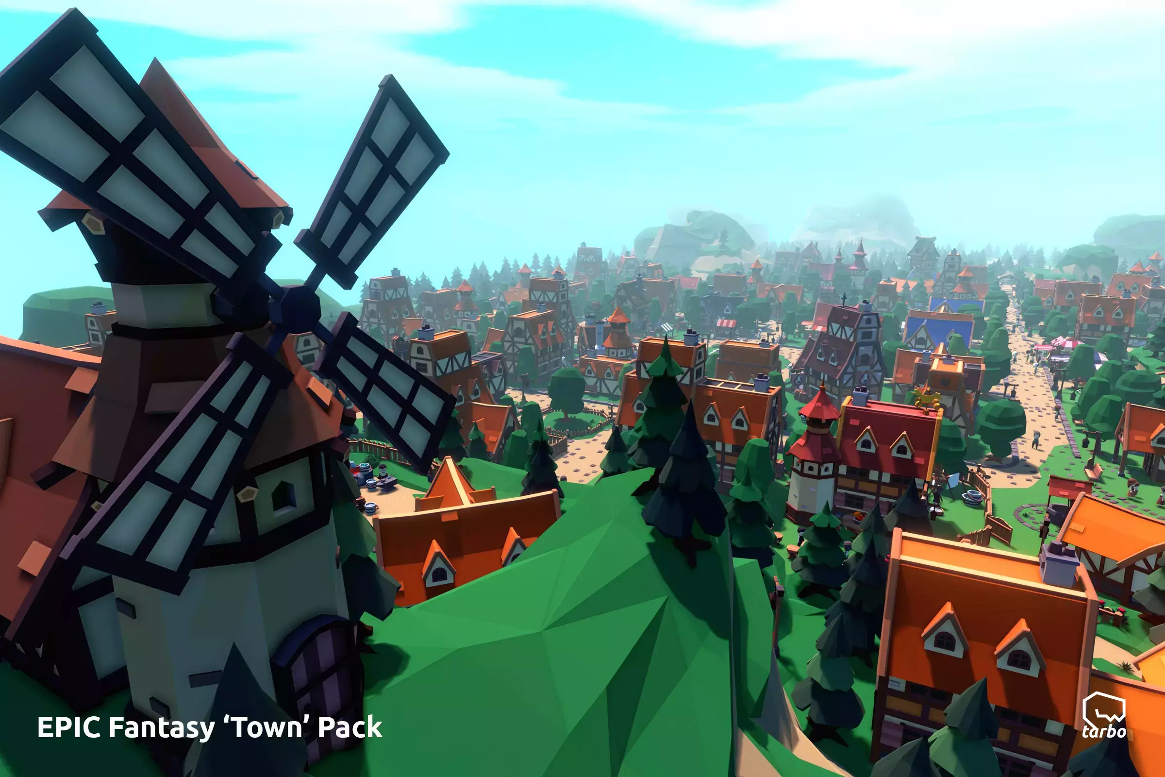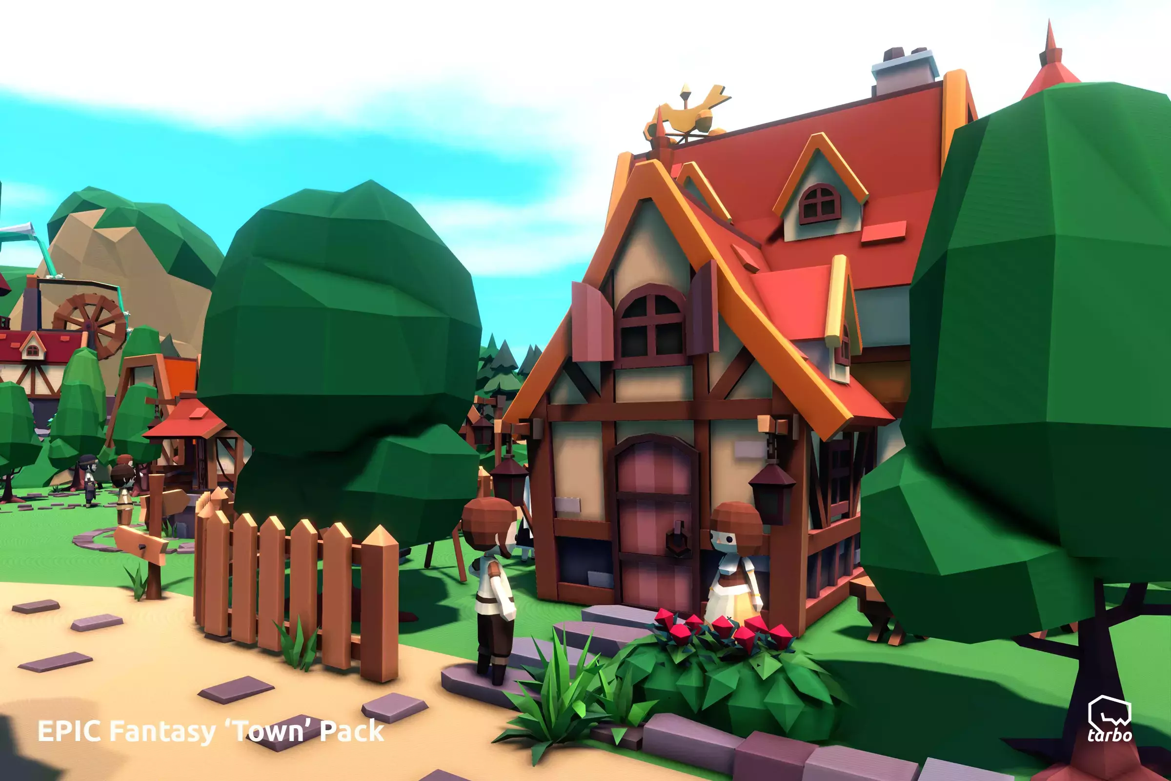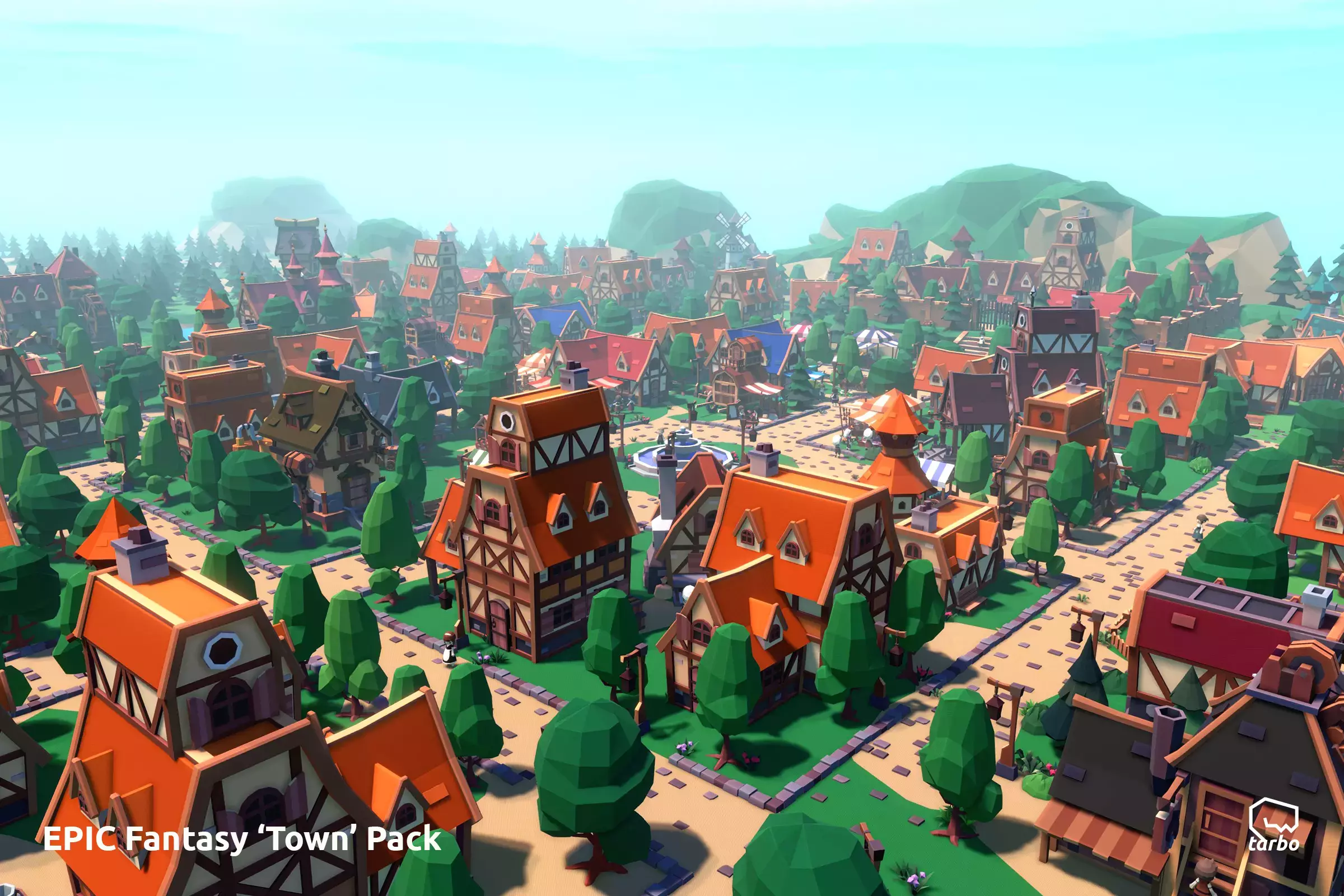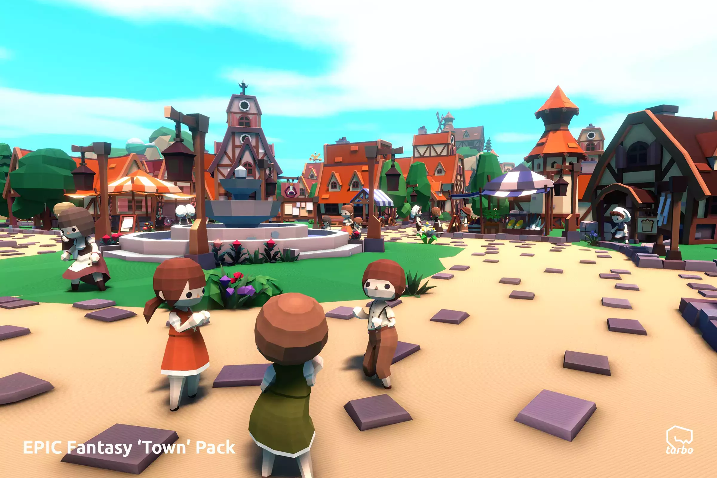 EPIC Fantasy Town Pack представляет собой полигональную игру в стиле фэнтези, которая подходит для игр в жанре "Сверху вниз", RPG, приключенческих, социальных и RTS. Этот набор позволяет вам создать свой собственный красивый и разнообразный фэнтезийный город с персонажами.