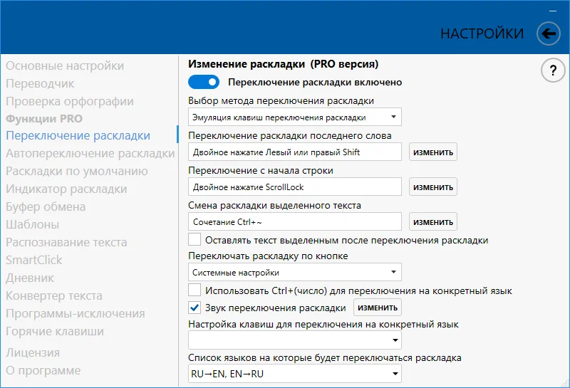- Умное переключение раскладки и регистра: Автоматически исправляет текст, набранный в неправильной раскладке (как в Punto Switcher), и позволяет менять регистр (заглавные/строчные буквы) для слов, строк или выделенных фрагментов.