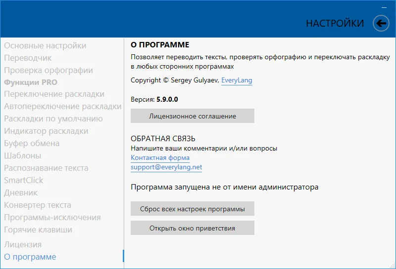 EveryLang PRO 5.9 Portable by conservator — это компактная, но мощная утилита для работы с текстом. Программа предлагает комплексный набор инструментов для управления языком ввода, перевода и проверки текста прямо в процессе работы с любыми приложениями.