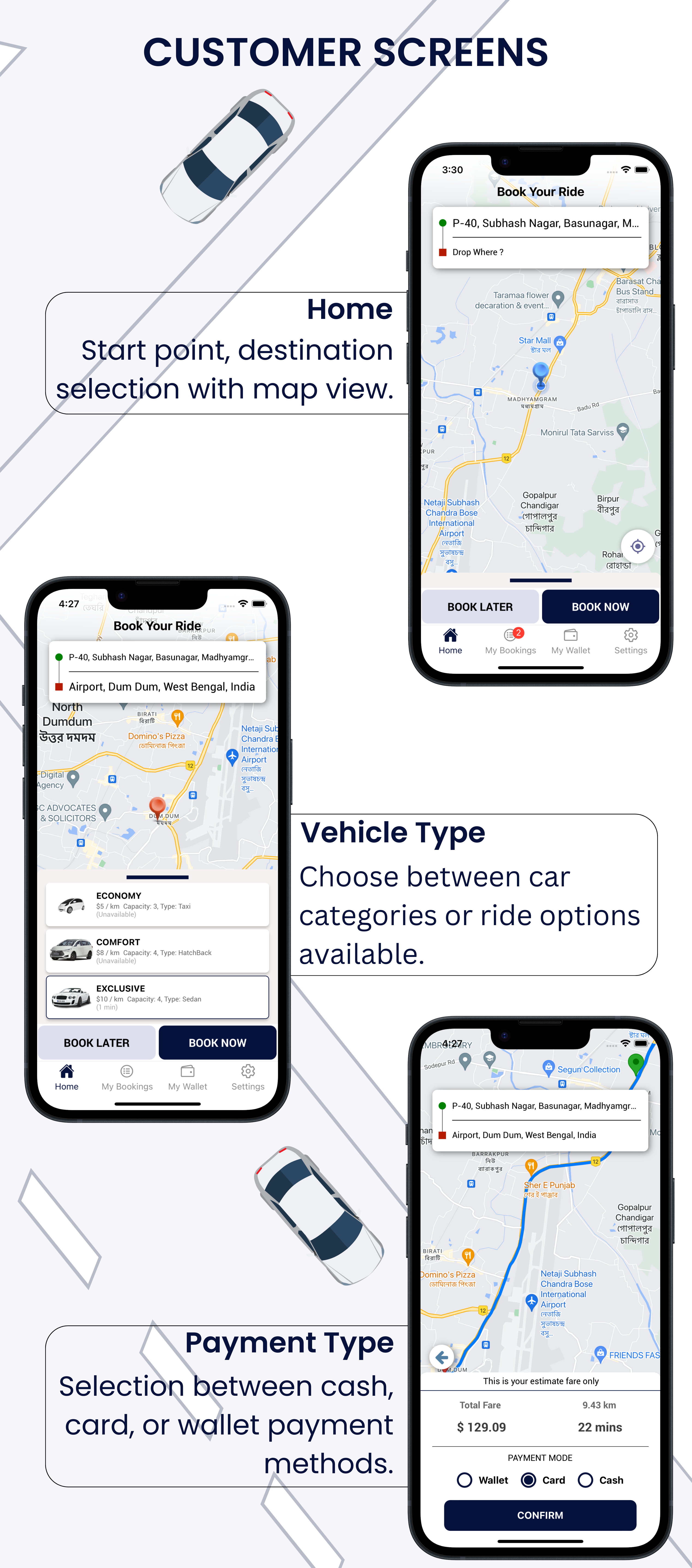 Exicube Taxi App v4.0 Untouched подходит для создания кастомных сервисов такси, корпоративного использования или запуска новых компаний, нуждающихся в быстром запуске приложения с базовым функционалом для такси.
