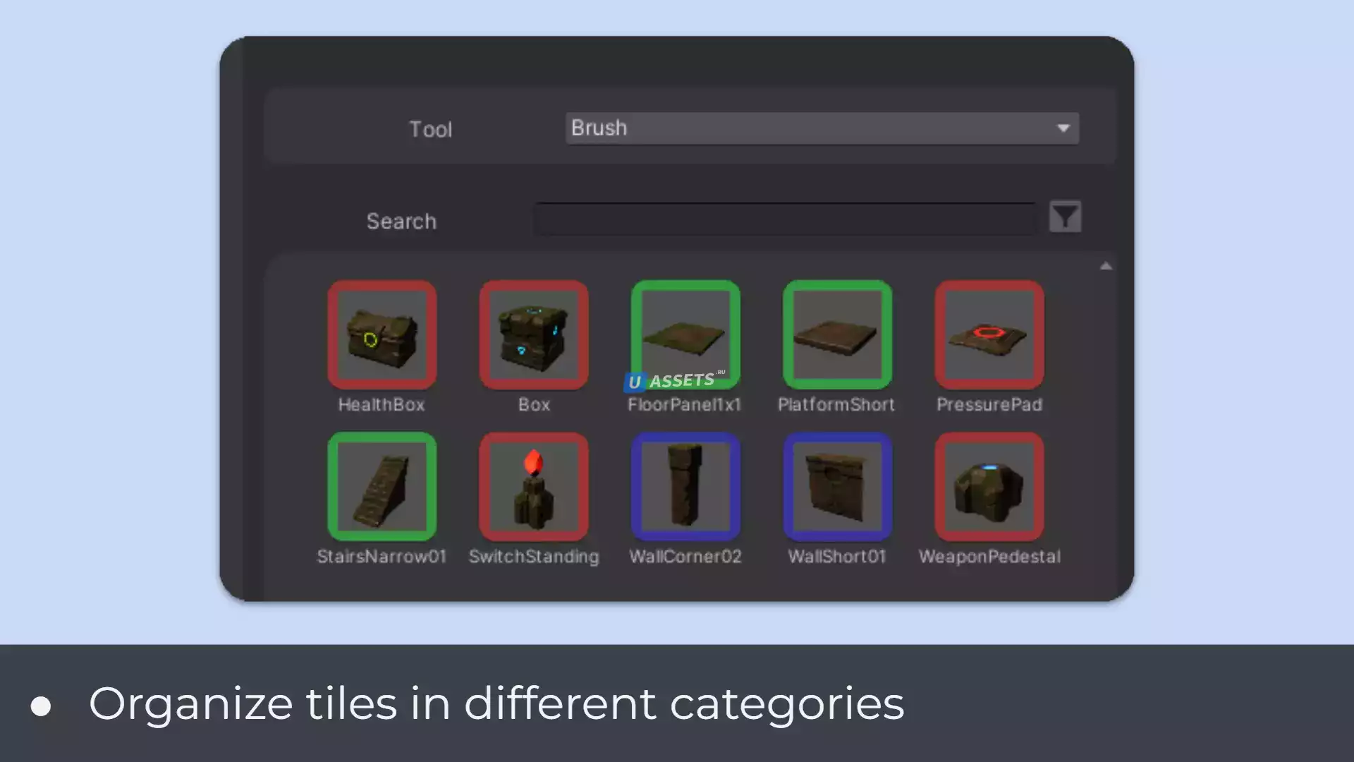 ✔️ Сохраняйте и загружайте плитки в ресурсы, чтобы их можно было использовать повторно.