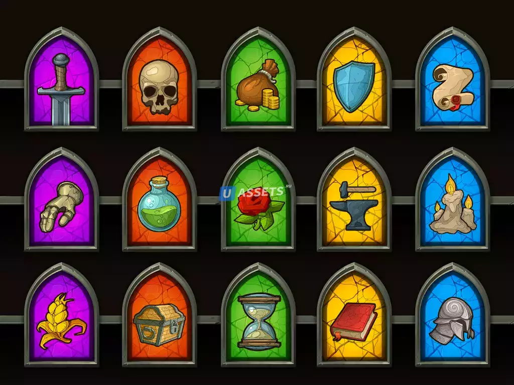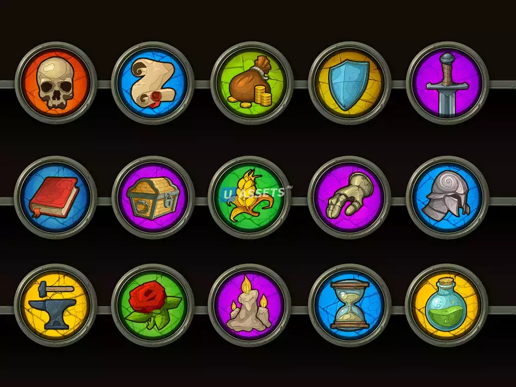 Набор из 15 фантазийных пуговиц. Все кнопки имеют высокое разрешение. Хороший выбор для любой игры в стиле фэнтези. Набор из 15 фантазийных пуговиц. Все кнопки имеют высокое разрешение. Хороший выбор для любой игры в стиле фэнтези. - 15 фантастических