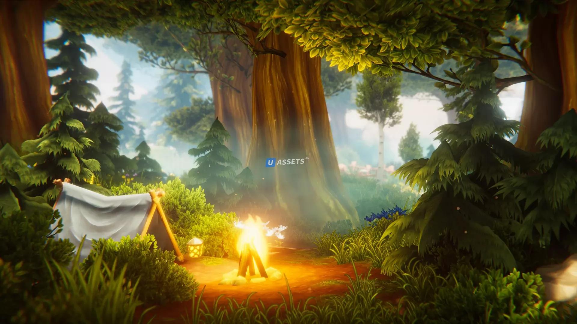 ➤ 53 модели реквизита, такие как грибы, камни, заборы, водные растения, палатка, костер, мост, водопады