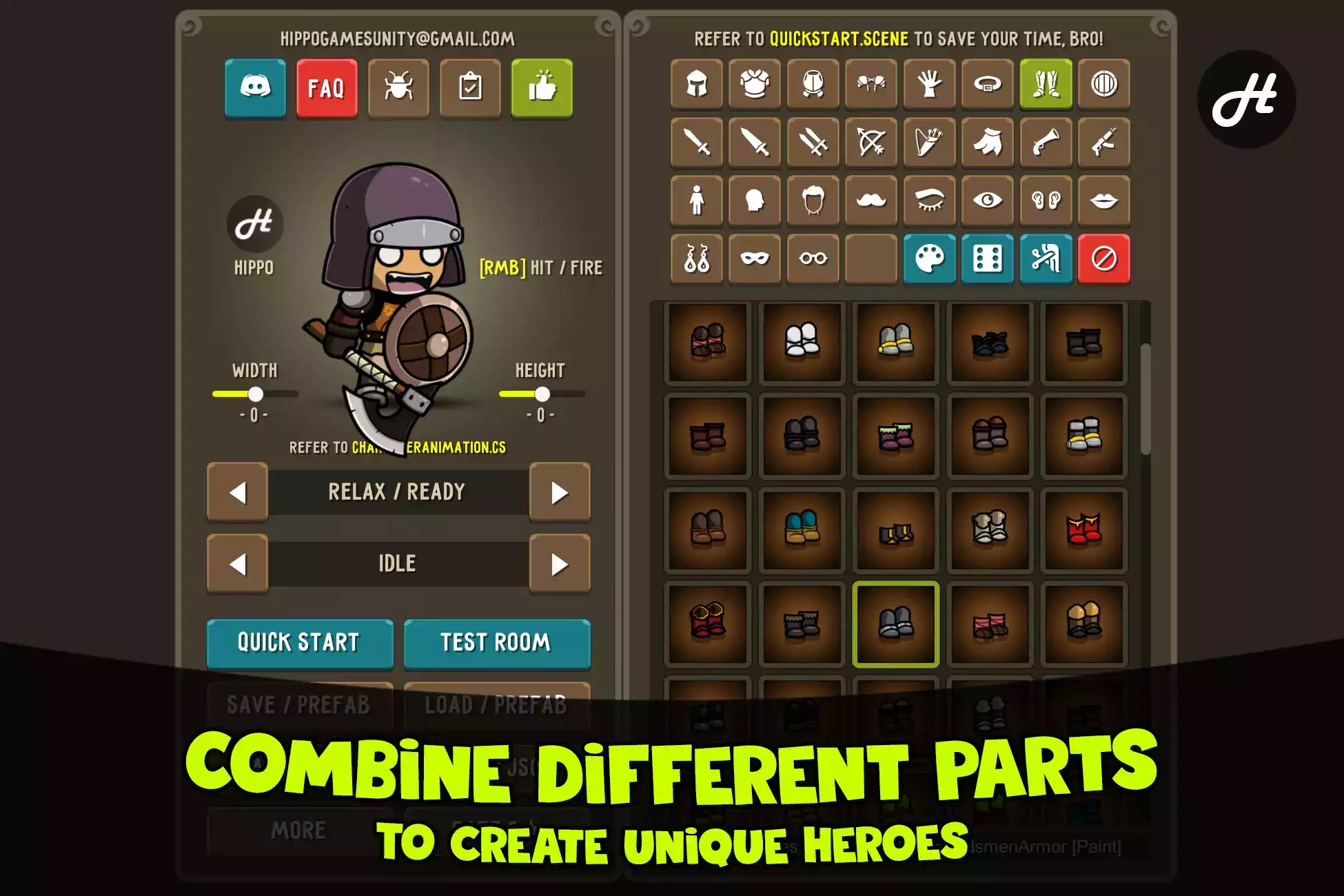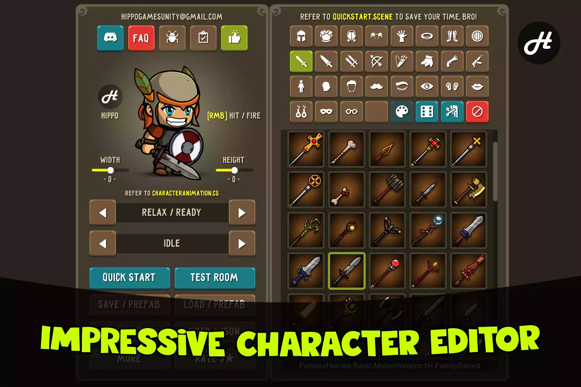 С помощью редактора персонажей Fantasy Heroes: вы сможете создавать удивительных человеческих персонажей для своих мобильных игр. Создавайте ролевые игры, аркады, платформеры, квесты и даже стратегии! Этот пакет содержит полную коллекцию спрайтов, редактор персонажей, базовую анимацию, систему инвентаря с иконками. Наш встроенный редактор поможет вам настроить ваших персонажей и воспроизвести анимацию.