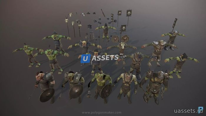 Армия низкополигональных орков сделайте свою фэнтезийную игру с различными аксессуарами, доспехами и оружием.