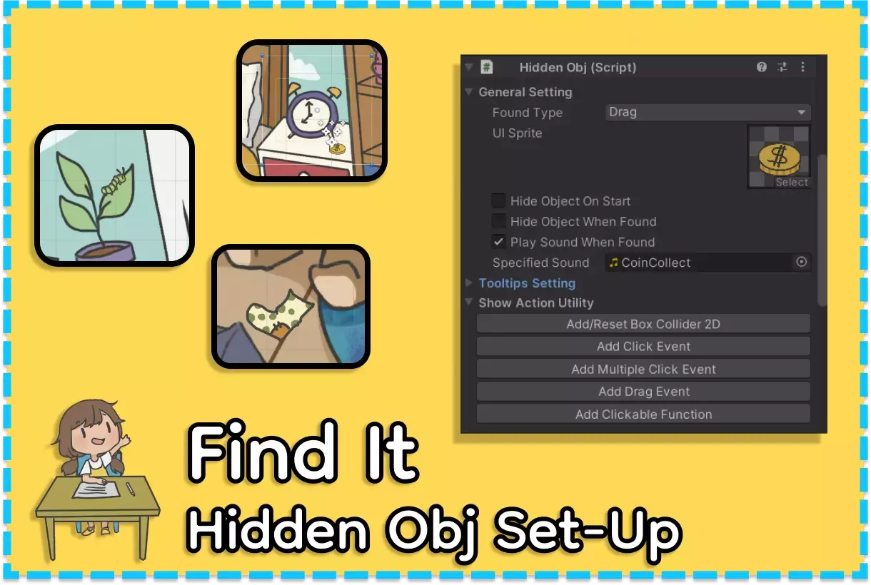 Find It - это шаблон плагина Unity для создания игр со скрытыми объектами. Разрабатывайте такие игры, как Hidden Folks, Scavenger Hunt, Grim Legends и другие, без необходимости писать какой-либо код!