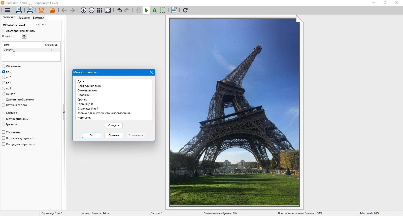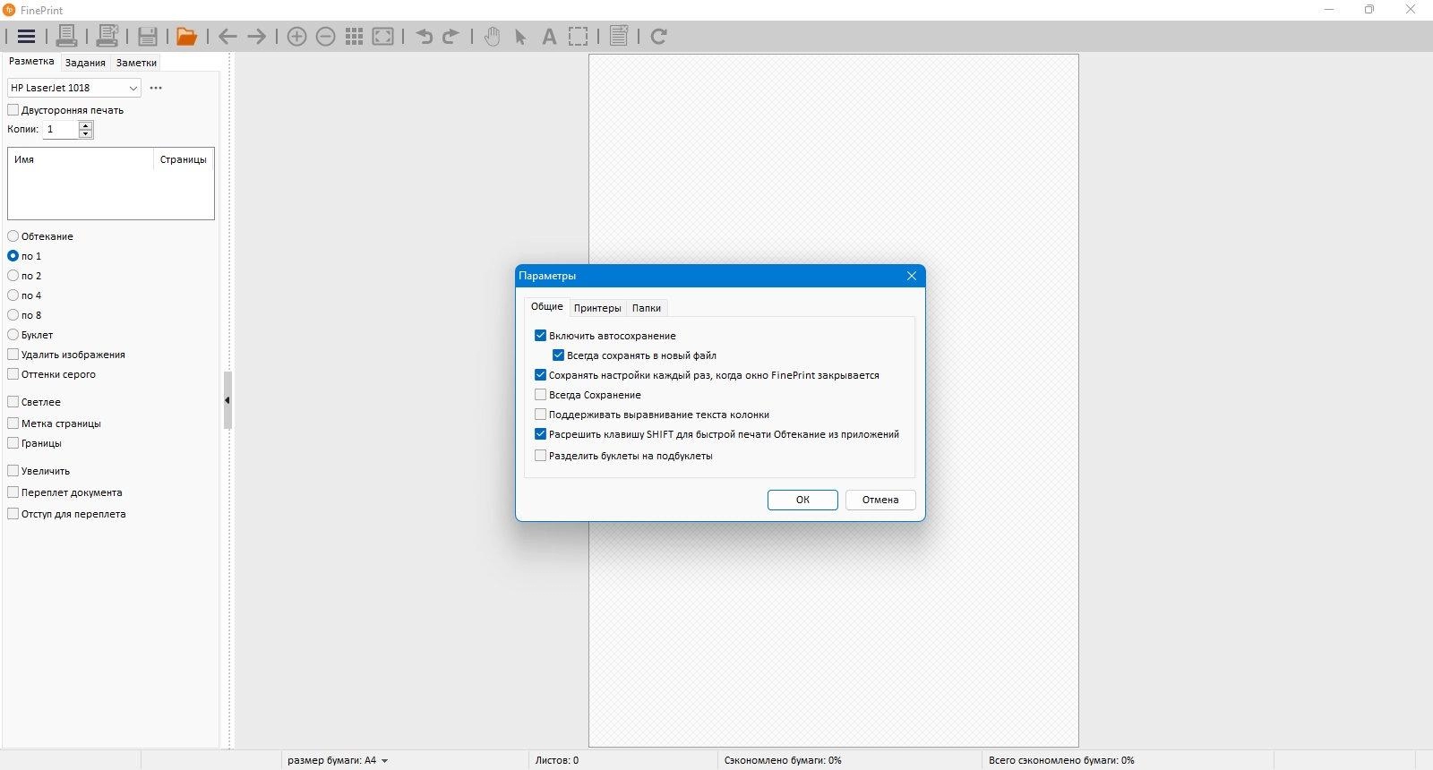- Возможность создания нескольких виртуальных принтеров FinePrint с разными предустановками для быстрой работы в типовых сценариях (например, один для брошюр, другой для бланков).