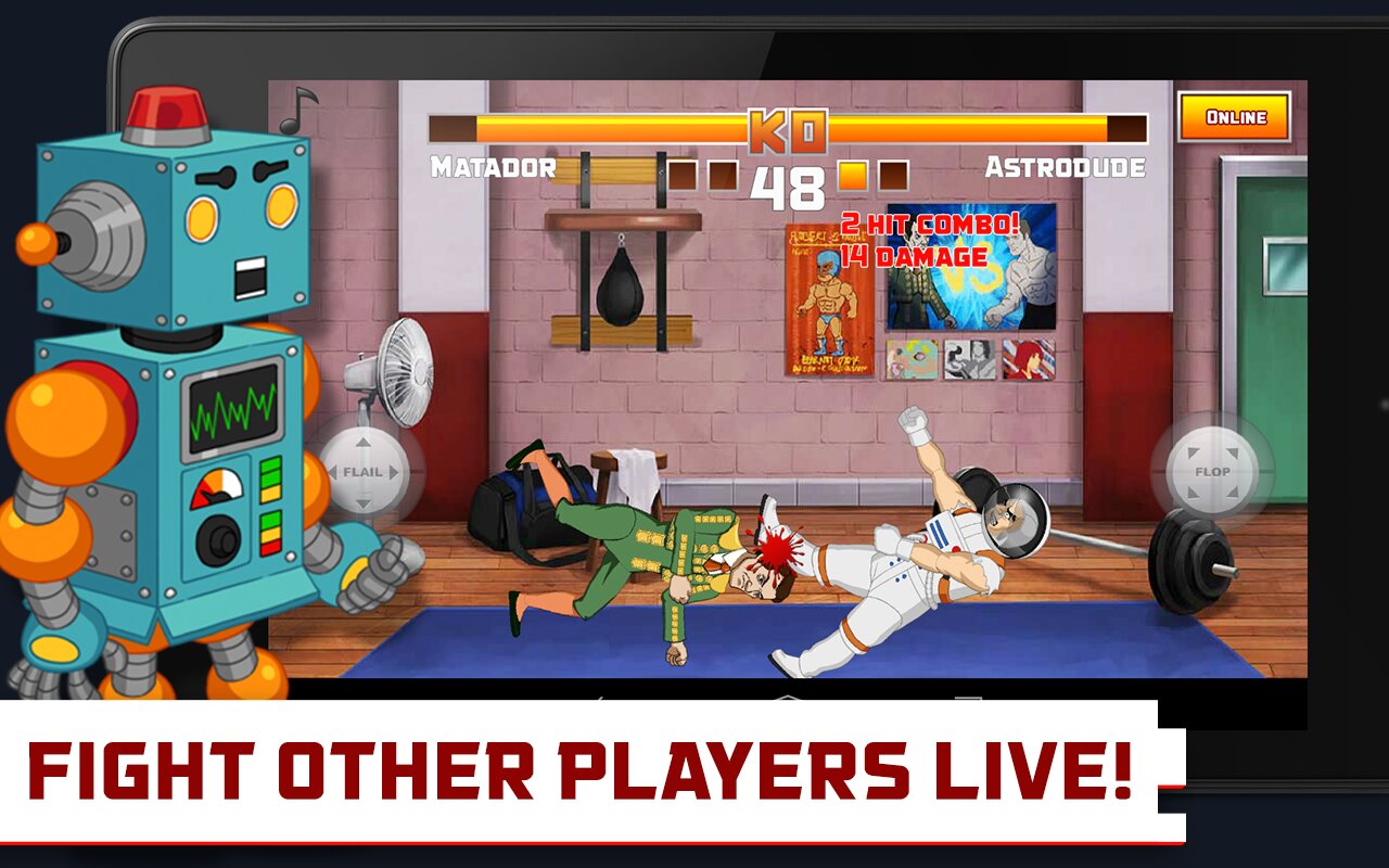 FLOP FU - PHYSICS FIGHTER 1.8 представляет собой уникальный файтинг, где главную роль играет не отточенное мастерство, а комичная неуклюжесть. Это приложение предлагает совершенно иной взгляд на жанр, делая ставку на веселье и абсурдную физику, а не на сложные комбинации.