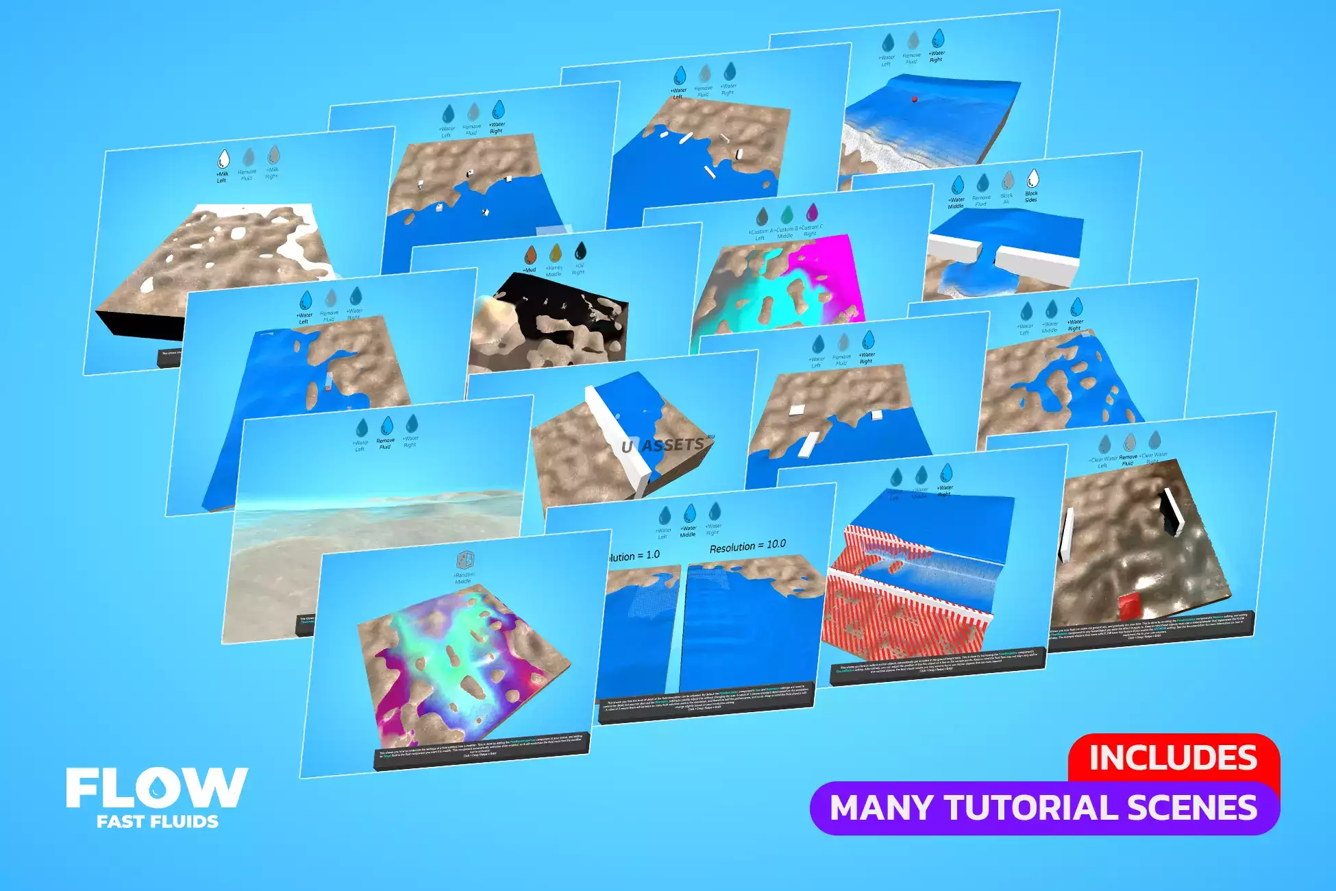 ? Простота в использовании ― Интегрируйте FLOW в свой проект всего несколькими щелчками мыши, не требуя программирования. Чтобы помочь вам понять, как работает каждая функция, существует множество обучающих демонстрационных сцен, в которых вы шаг за шагом ознакомитесь с каждой функцией. После того, как вы закончите с учебными пособиями, вы можете посмотреть демонстрационные сцены, которые сочетают в себе множество функций для создания различных игровых сценариев.