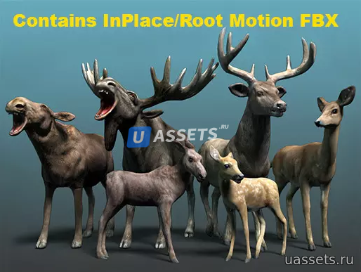 •Лань оленя (Задняя часть) - SHP 19072/HP 4868/LP 3172 трис, 36 Костей, 3 Цветные Текстуры, 1 Нормальная, 1 Зеркальная Карта (все 2k/4k), 22 Анимации (на месте и в корне);