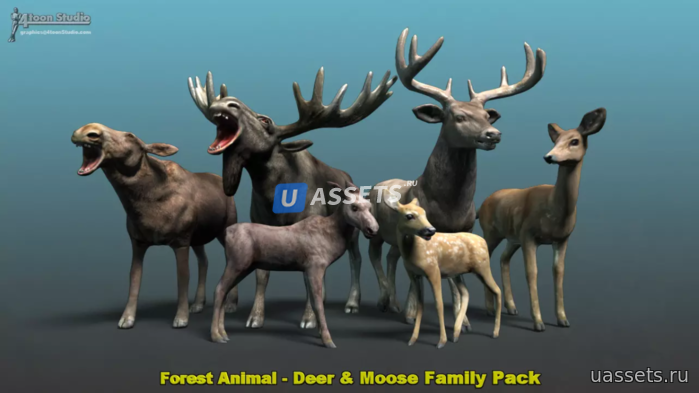 Это Высокополигональная 3D-модель Семейства Оленей и лосей, пакет содержит ШЕСТЬ [6] моделей с некоторыми сетками, оптимизированными для низкополигональной версии: