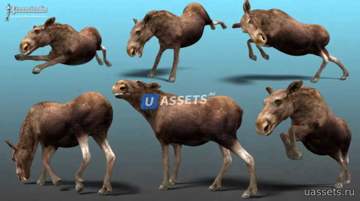 •Лосиная корова (Лось) - SHP 15592/HP 3840/LP 1932 трис, 37 Костей, 1 Цветная текстура, 1 Нормальная, 1 Зеркальная карта (все 2k/4k), 26 Анимаций (на месте и в корне);