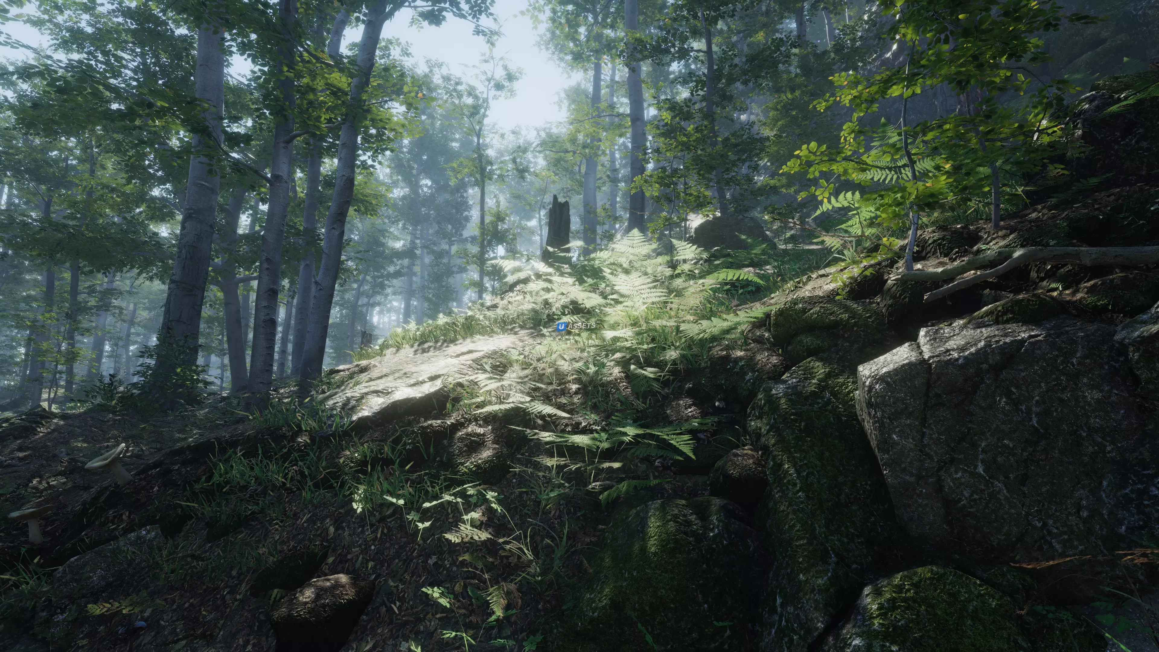 - 37 объектов, таких как ветка, пень, ствол, склон, бревно и мелкие камни, все с уровнем детализации в 92 сборных элементах, открытые, покрытые: листьями, мхом, песком;