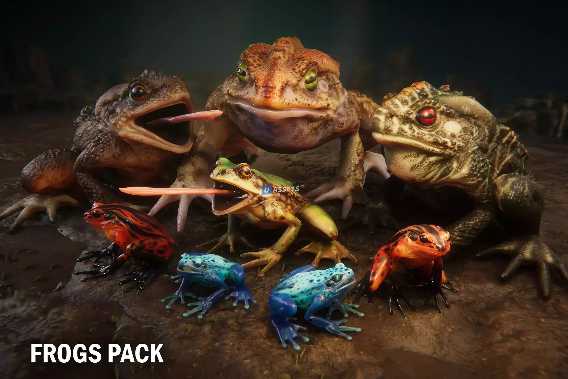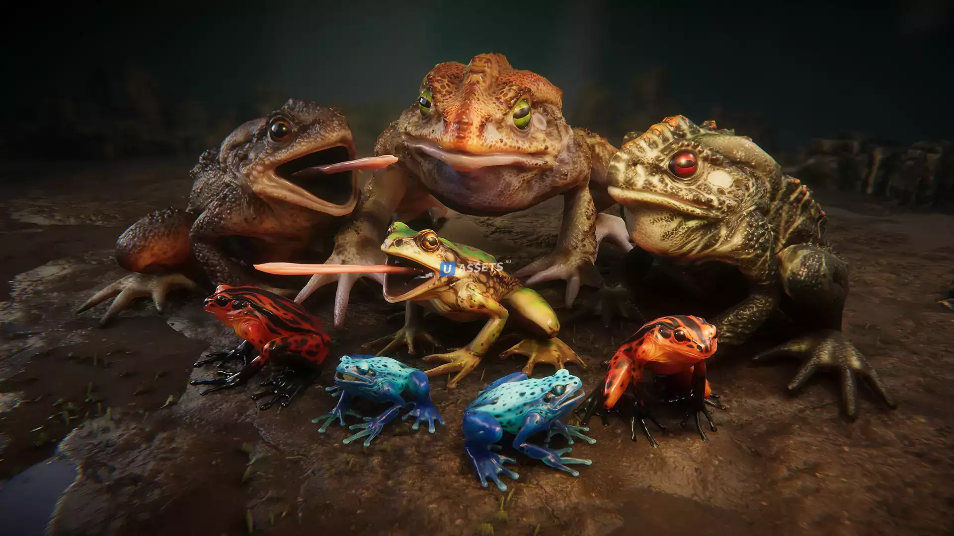 Здесь вы можете найти две полностью анимированные низкополигональные сетки лягушек и древесные материалы для каждой. Все текстуры имеют размер 4096x4096.