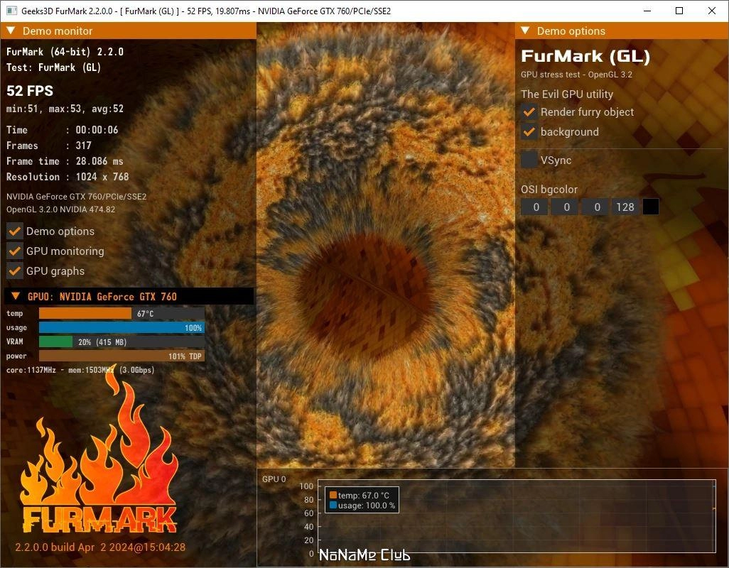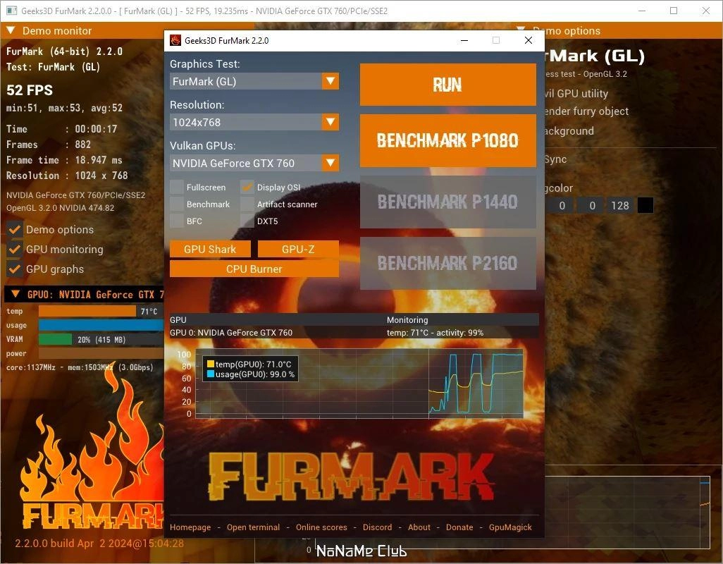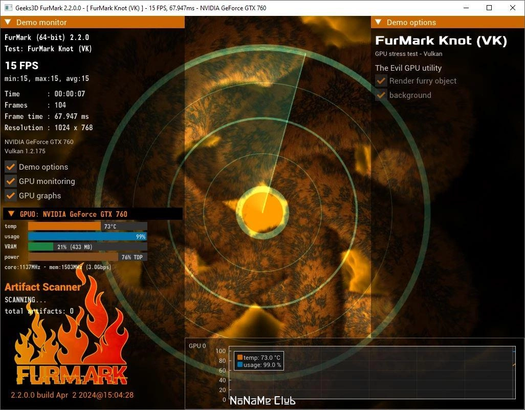 FurMark 2.2.0.1 отличается улучшенной поддержкой командной строки для автоматизации задач и создан на базе платформы GeeXLab, что обеспечивает современный и эффективный движок для тестирования.