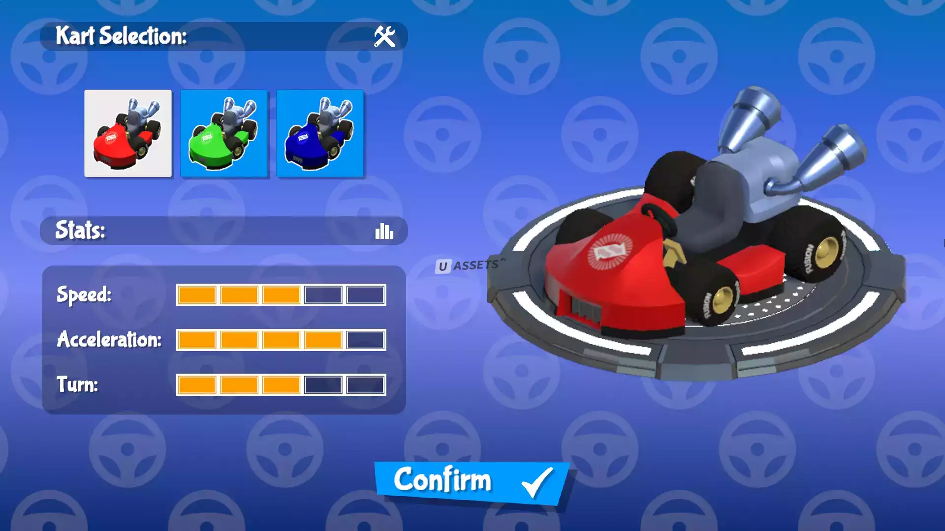 В проекте есть полный игровой цикл, позволяющий до 8 пользователям присоединиться друг к другу и соревноваться, чтобы увидеть, кто победит, а также тренироваться вместе без таймеров на трассе с бесконечными кругами. Основные особенности включают в себя: