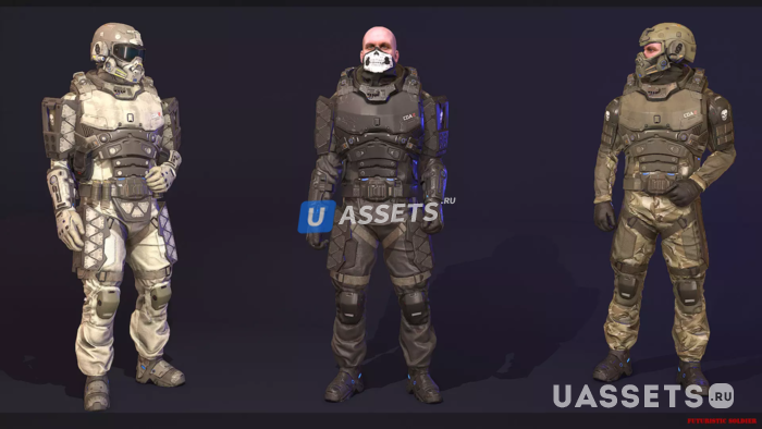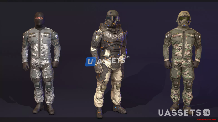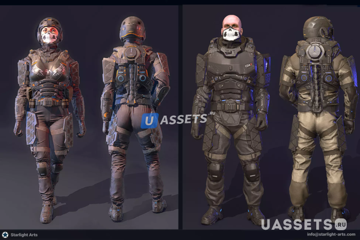 Есть набор футуристической одежды и доспехов, а также материалы PBR для кастомизации.