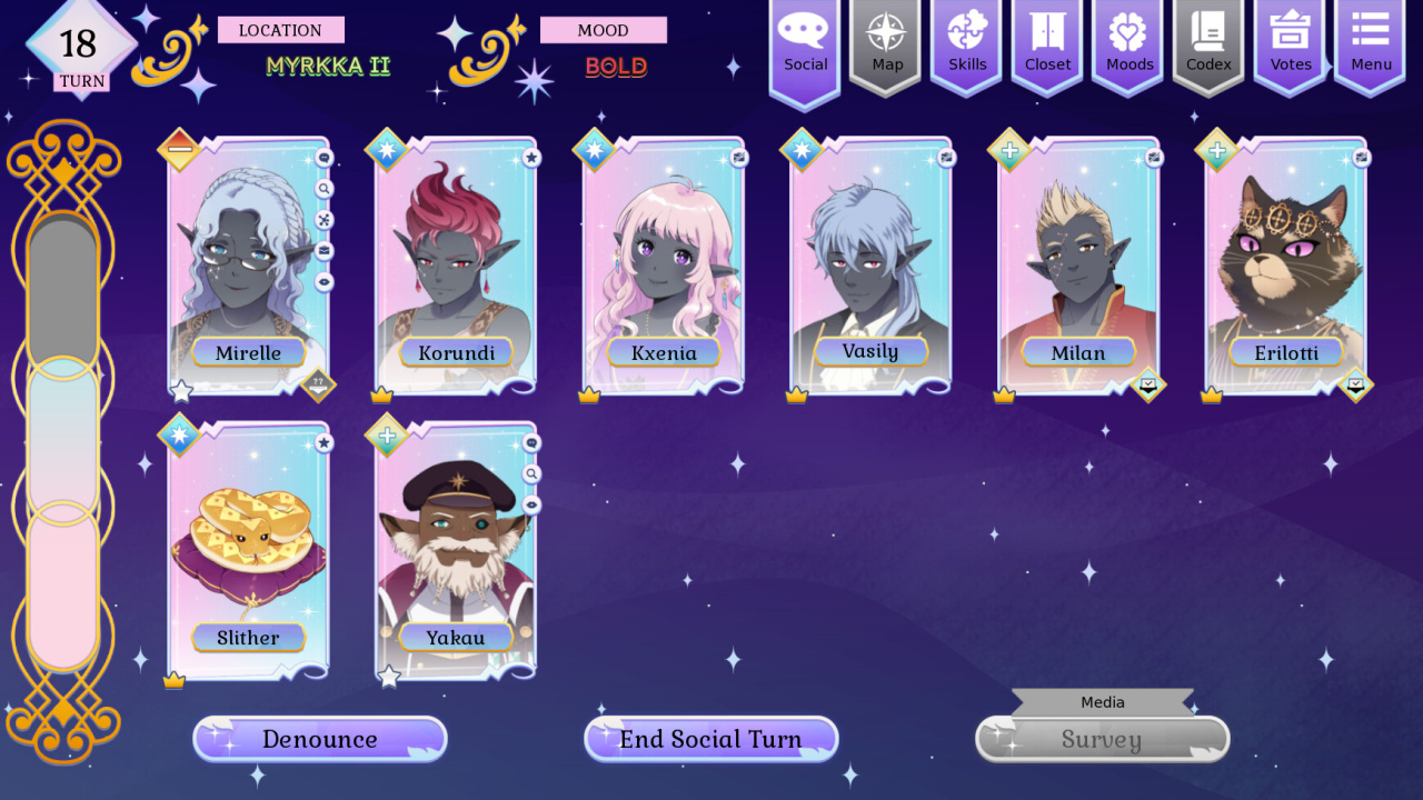 Ключевым элементом геймплея выступают постоянные проверки характеристик, от которых напрямую зависит выживание героини. Любое неверное решение или недостаточная подготовка могут привести к провалу миссии или даже к гибели от рук наемных убийц. Поэтому в Galaxy Princess Zorana каждое действие требует тщательного планирования и стратегического мышления. События разворачиваются в межпланетной империи, населенной различными инопланетными расами, что открывает новые возможности для заключения союзов. В дальнейшем повествование будет расширено за счет добавления альтернативной сюжетной линии. В ней Зорана сможет возглавить восстание, чтобы положить конец монархии, а не продолжать ее в качестве новой императрицы.