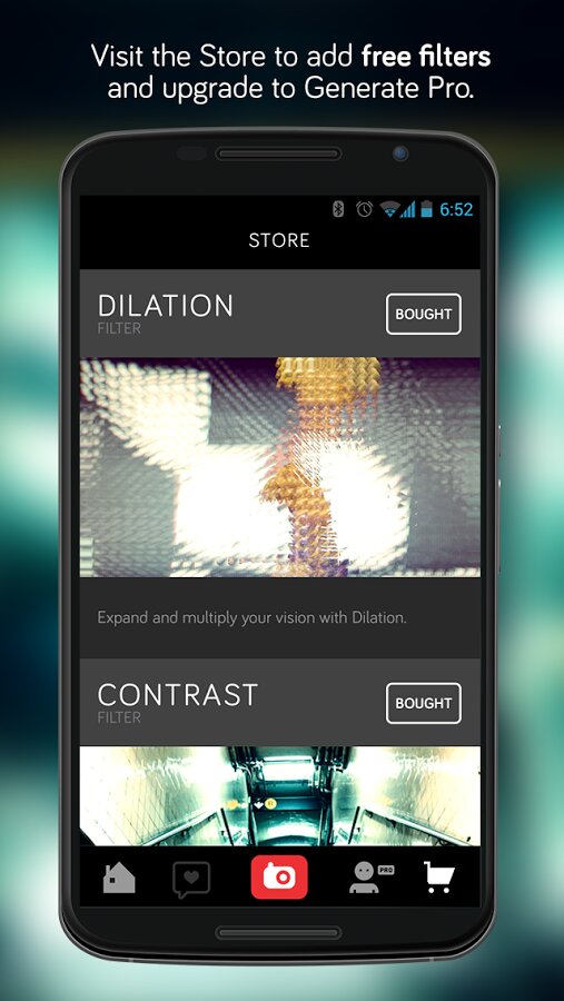 Внутри приложения есть магазин с дополнительными эффектами и инструментами для редактирования. Также Generate является и небольшой социальной сетью, где пользователи делятся их работами.