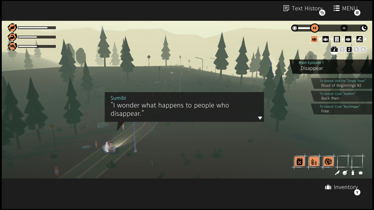Найденные предметы открывают систему готовки, и приготовленная еда напрямую влияет на сюжет игры. Употребление определённых блюд может открывать новые диалоговые ветки для протагонисток, соответствующие настроению или событиям. Можно экспериментировать с рецептами, обнаруженными во время исследования. В игру также вплетены элементы выживания: героини со временем испытывают голод, что требует внимания к их пропитанию, хотя эту опцию можно отключить в настройках сложности.