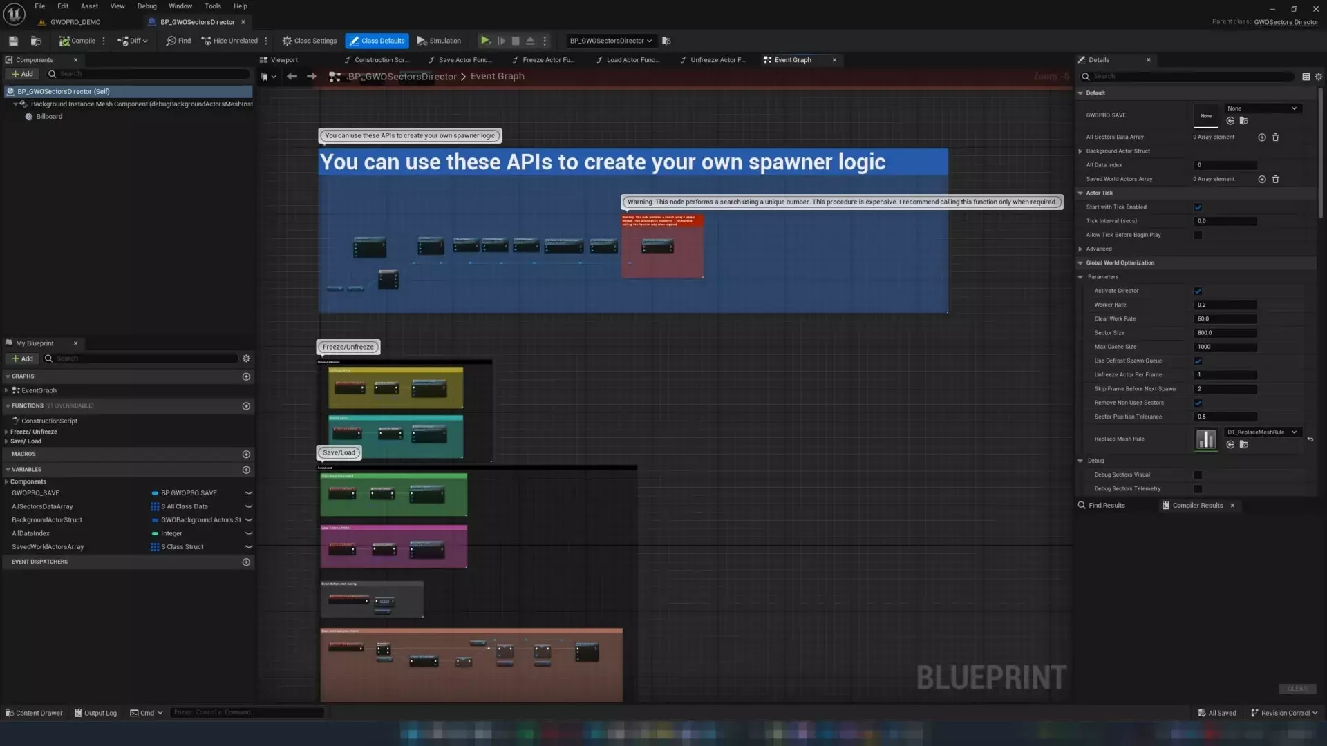 Все актеры, которые в данный момент готовы к спавну, передаются в Sectors Director, который может спавнить всех не за один кадр, а исходя из настроек. Например, 2 актера за 1 кадр, а после этого пропускать кадры, количество которых вы можете настроить сами. Поэтому спавн всех актеров происходит очень плавно и без потери FPS.