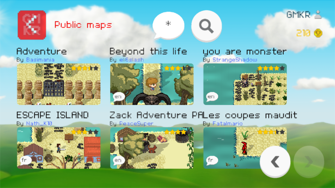 Готовые творения можно легко делиться с друзьями или публиковать на общедоступной стене карт для всех игроков. GMKR 1.0.66 также предлагает возможность играть в ролевые карты, созданные другими пользователями, зарабатывать очки и бороться за место в общей таблице лидеров.