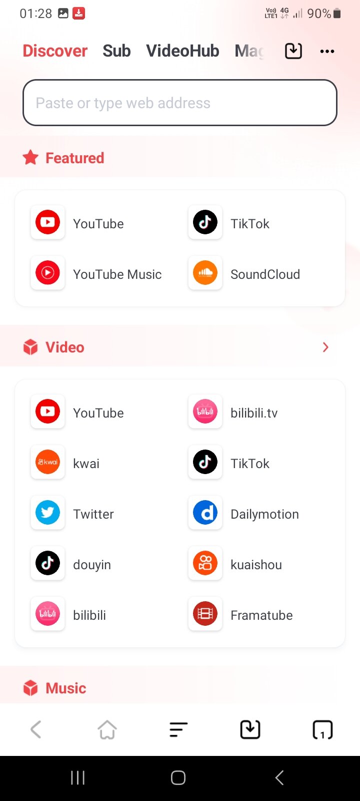 Программа предлагает два удобных способа для загрузки файлов. Вы можете либо вставить прямую ссылку в поисковую строку на главном экране, либо открыть нужный сайт через встроенный браузер. Во время воспроизведения видео на сайте достаточно нажать на плавающую кнопку, чтобы начать его скачивание.