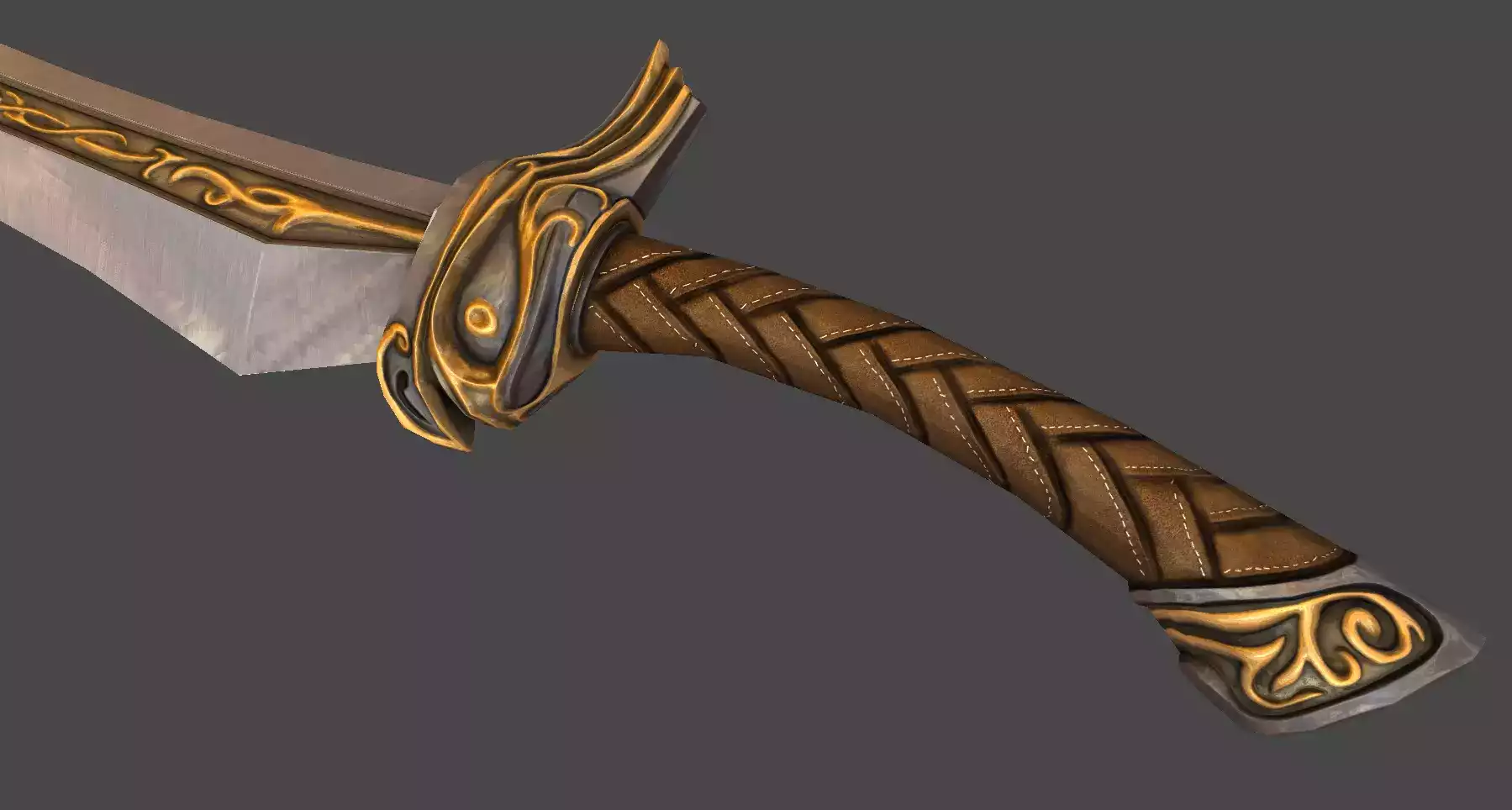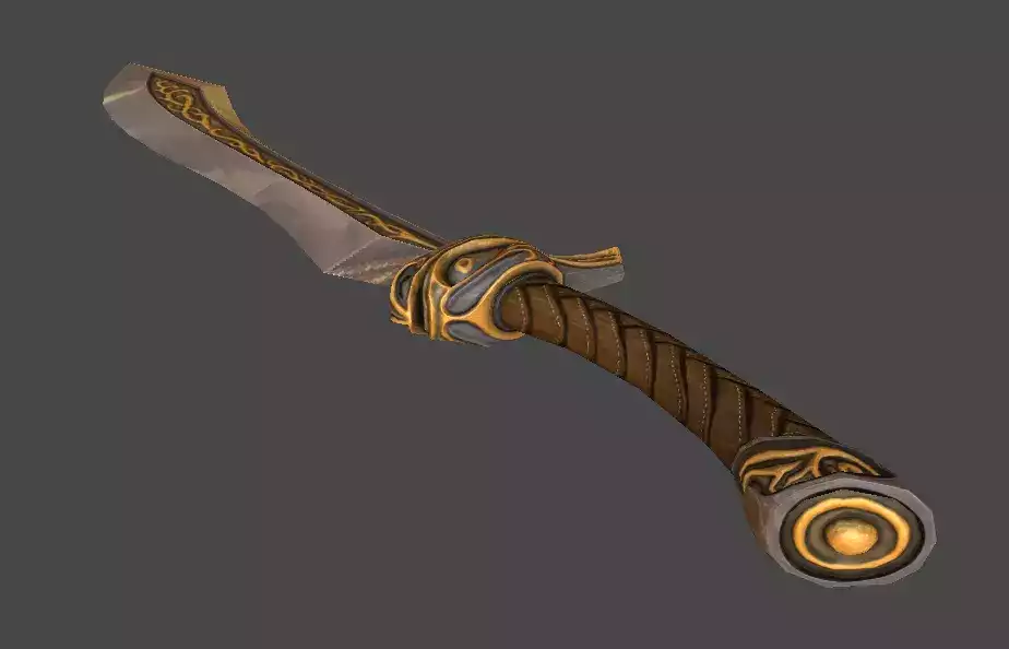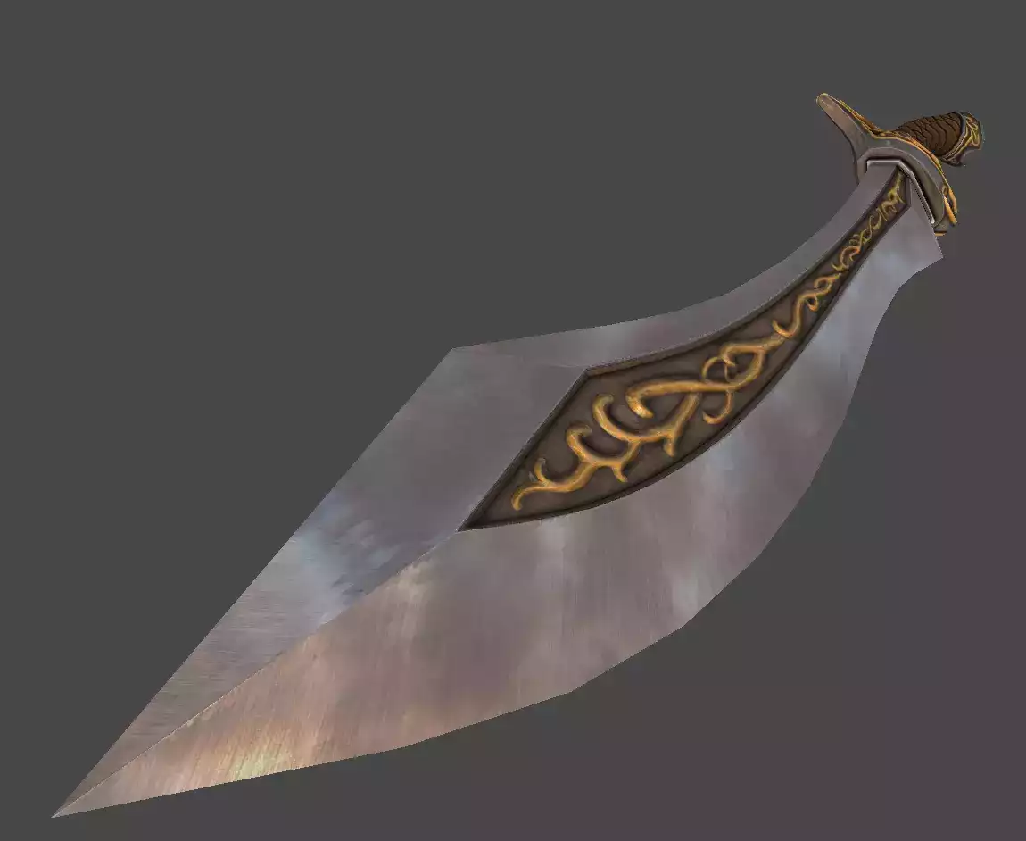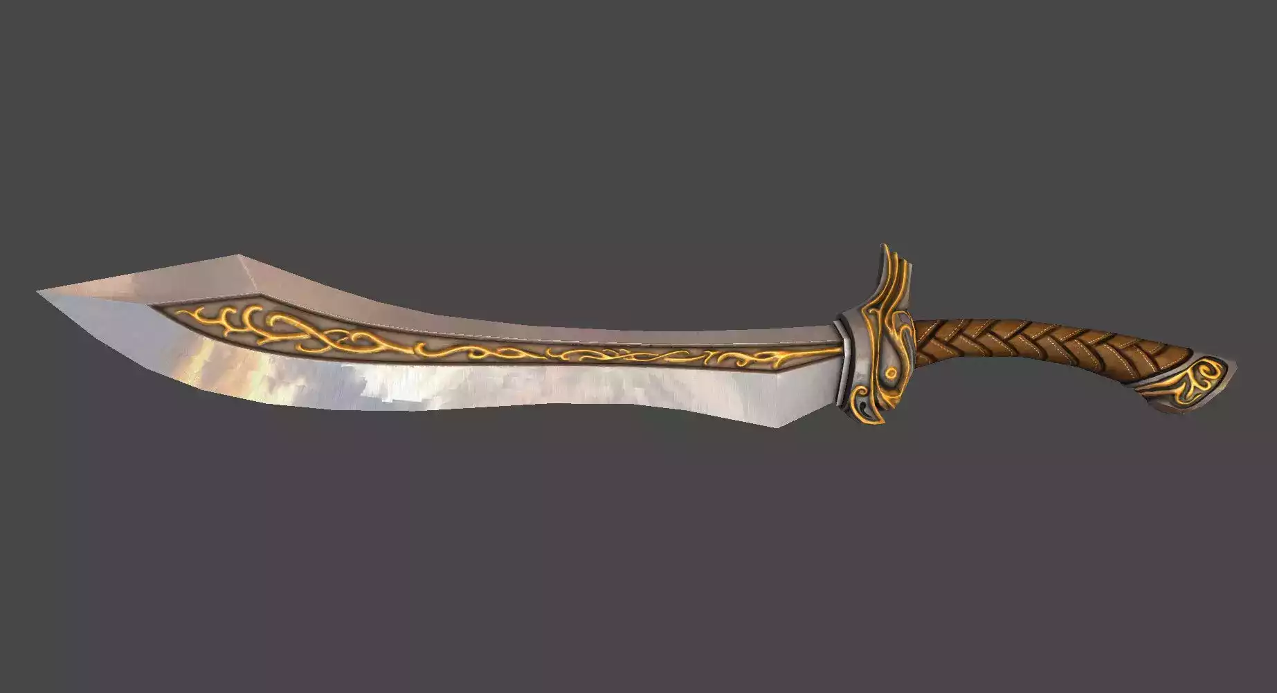 Золотой благородный фантазийный клинок.обьект : 1198 треугольников. Сетка, изображающая меч.