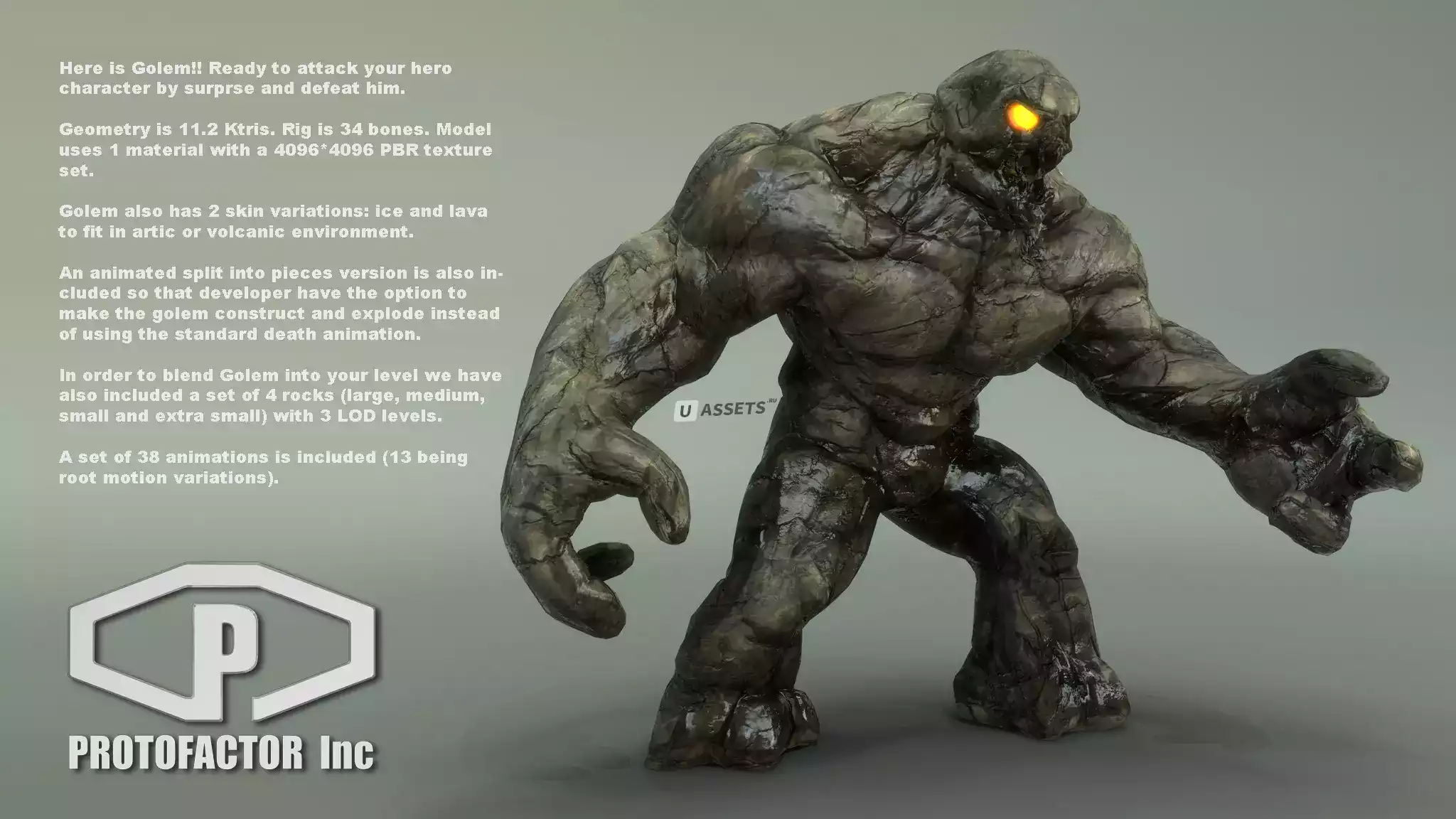 Геометрия 11,2К трис. Риг - 34 кости. Golem использует 1 материал с до 4096*4096 текстур.