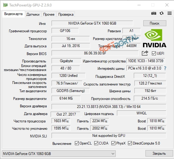GPU-Z - это небольшая и бесплатная утилита, которая предоставит подробнейшую информацию о важнейших параметрах графического ускорителя (видеокарты). Приложение позволяет считывать базовые характеристики и информацию о поддержке технологий (CUDA, OpenCL, PhysX, CrossFire).