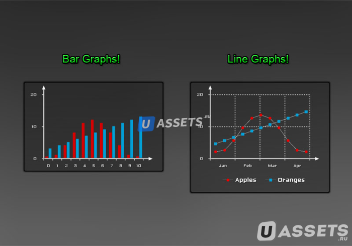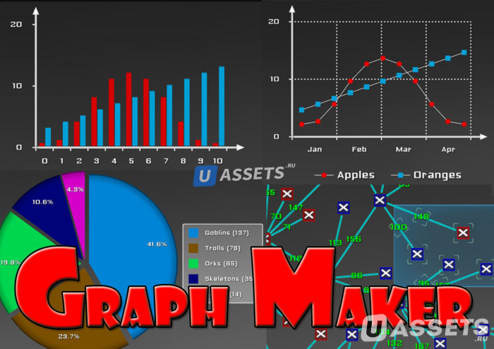 Обратите внимание, что скриншоты сцен являются хорошими примерами того, что вы можете делать с помощью Graph Maker, но они недоступны в Graph Maker и стандартной системе графического интерфейса Unity (UGUI), поскольку эти примеры были созданы около 2 лет назад, когда Graph Maker был предназначен только для система NGUI.
