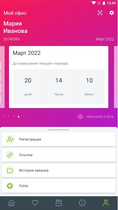 Для делового взаимодействия программа выполняет функции личного офиса. В нем доступны все ключевые показатели бизнеса: объемы продаж, состояние счетов, информация о структуре сети, а также инструменты для регистрации новых клиентов и партнеров. Это все необходимое для эффективного развития своего дела.