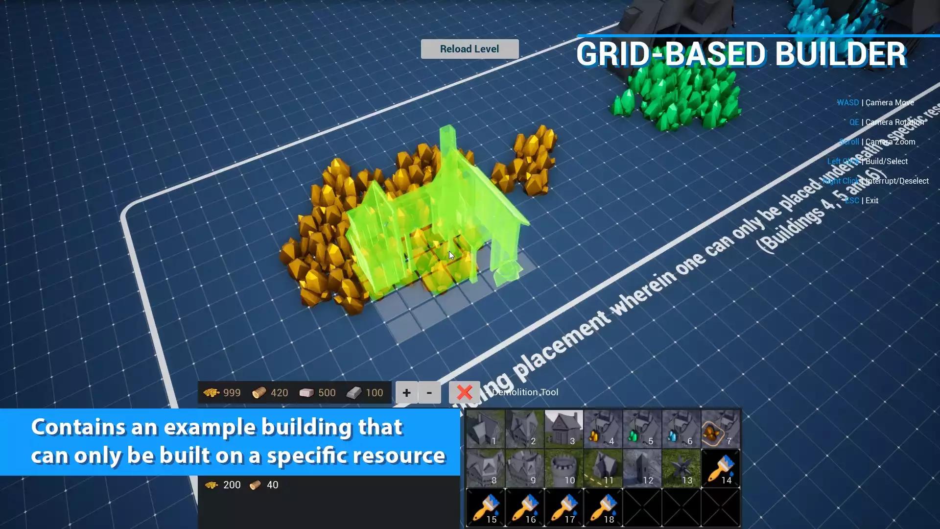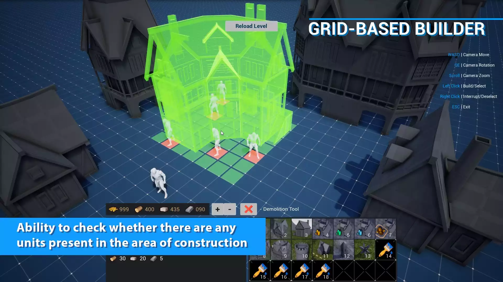 • Здания можно размещать не только во время выполнения, но и в редакторе. Также в редакторе можно прикрепить объект к сетке.